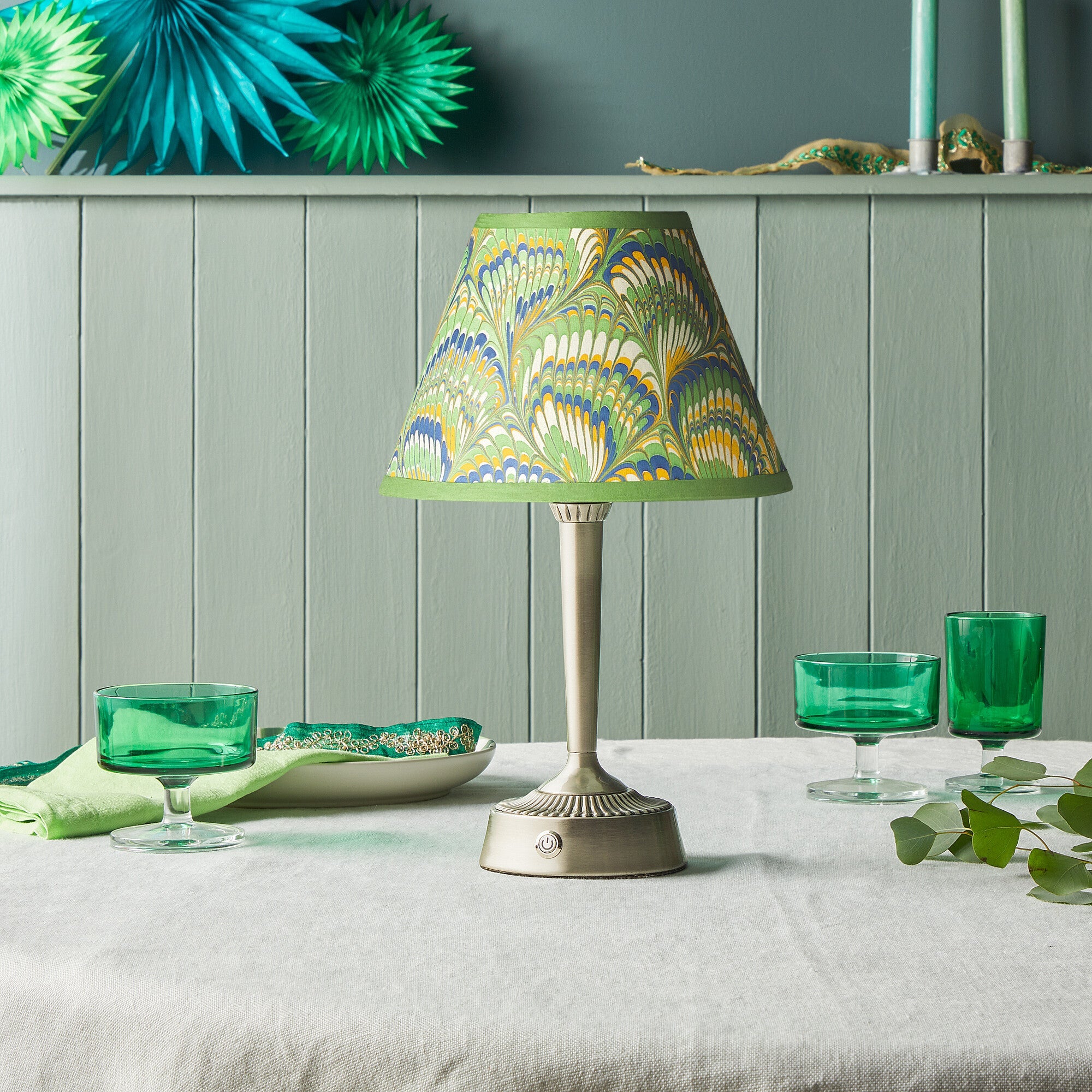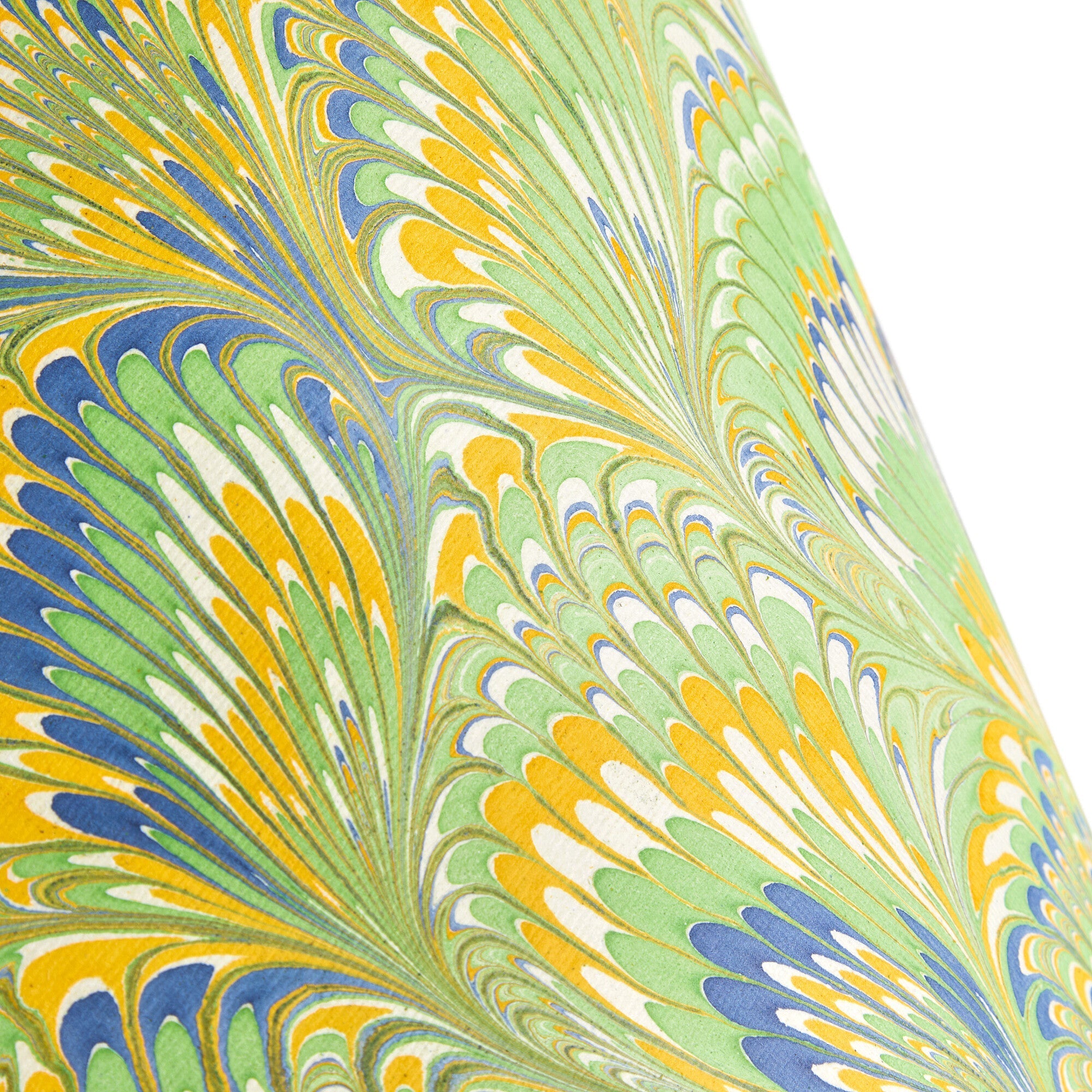 12cm tall tapered shade with candle clip in green,yellow & blue piave hand made marble paper see dimensions