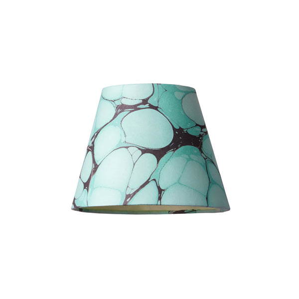 The marbling of paper is a craft that dates back hundreds of years, and it is fascinating to watch. Paints and oils are carefully dropped onto a thickened water, and are then raked and stretched to create the pattern. The paper is then slowly laid on top and once imprinted removed from the liquid and dried. No two pieces of paper can ever be the same. We are thrilled with these patterns - bold and brilliant. Please note that due to the smaller surface area required to create this effect, this shade will have two seams.