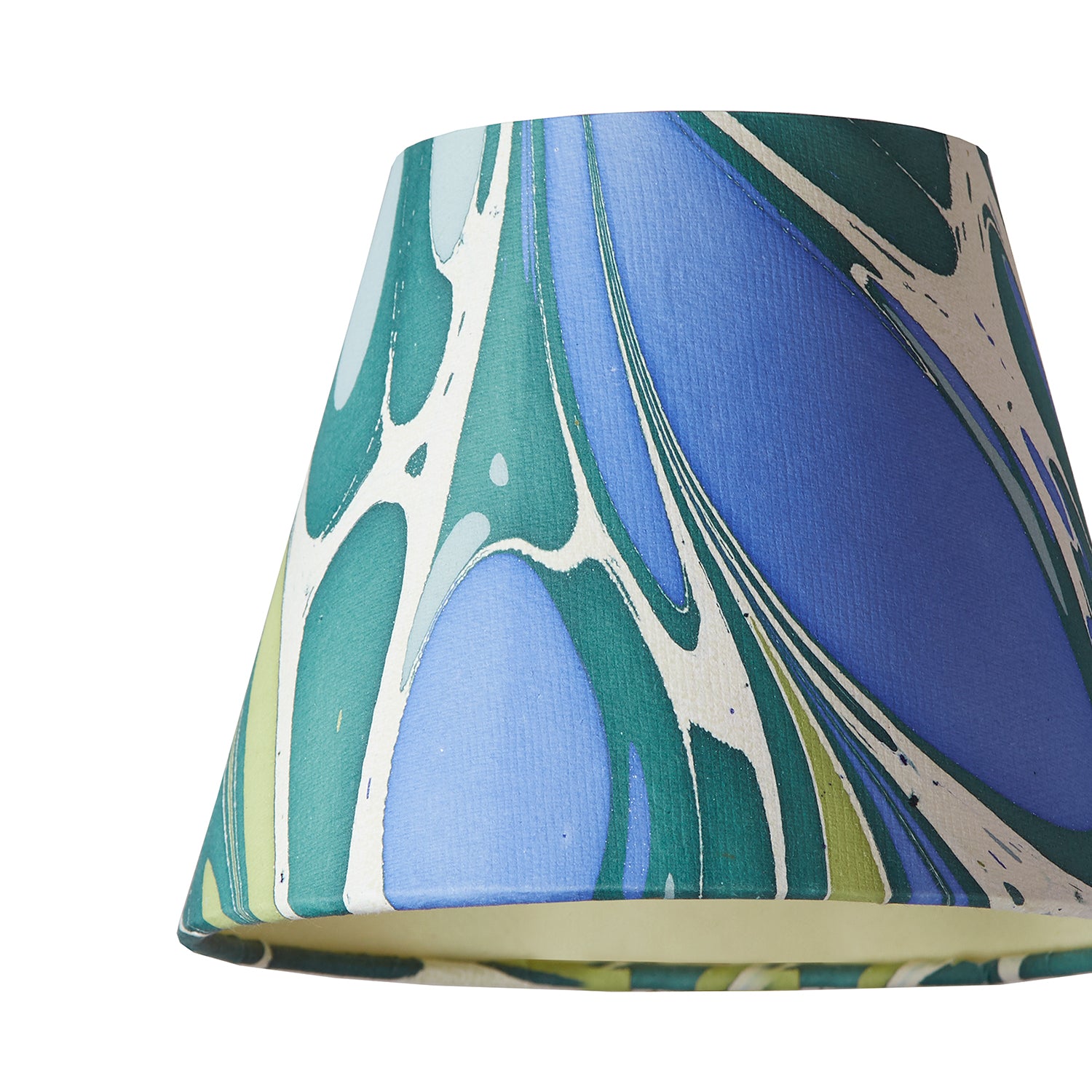 18cm pendant shade in green and blue roya hand made marbled paper see dimensions