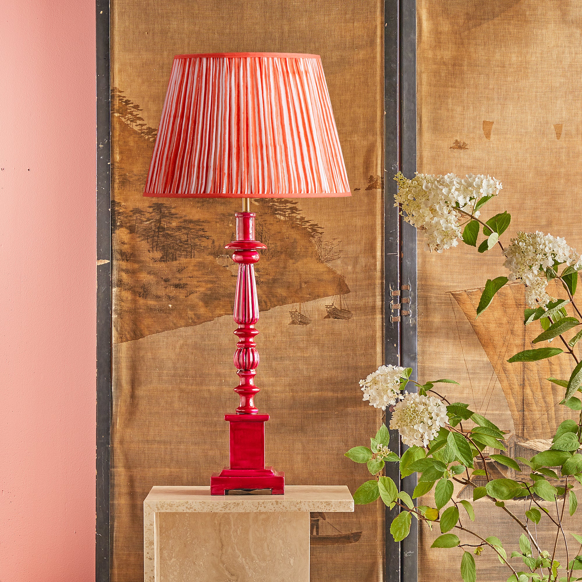 A lovely soft edged, slightly wonky stripe. Chalky, almost. Printed onto cotton and served with a solid coloured tape. In a gentle, and oh-so-sociable coral tone.