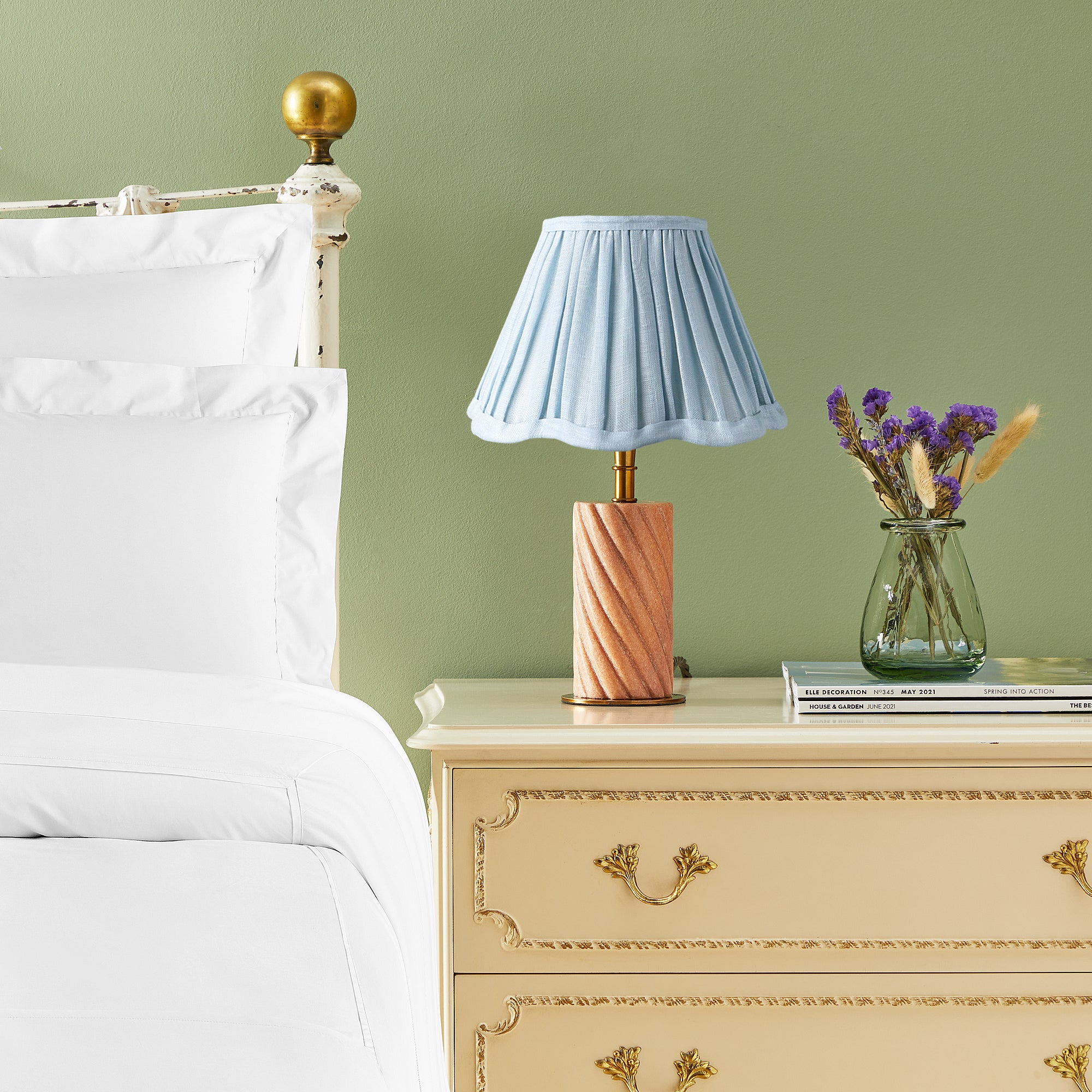 30cm scalloped straight empire shade in blue sky linen see dimensions