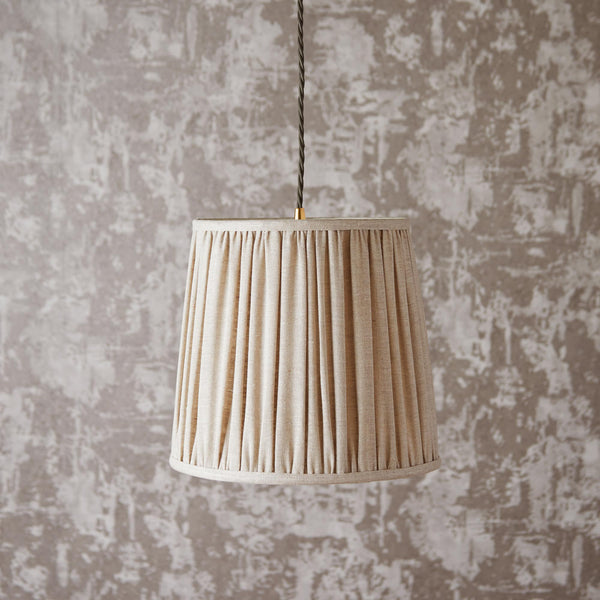 This is a tall tapered shade for hanging down. Simple, yet stylish natural linen.