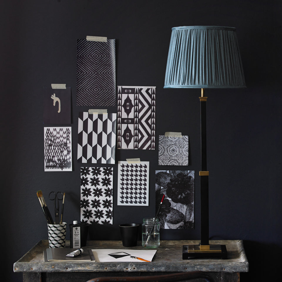 A gathered tall tapered shade in our soft, elegant and stunning blue Rajasthani silk, with a handemade cream paper lining. Effortlessly lovely.
