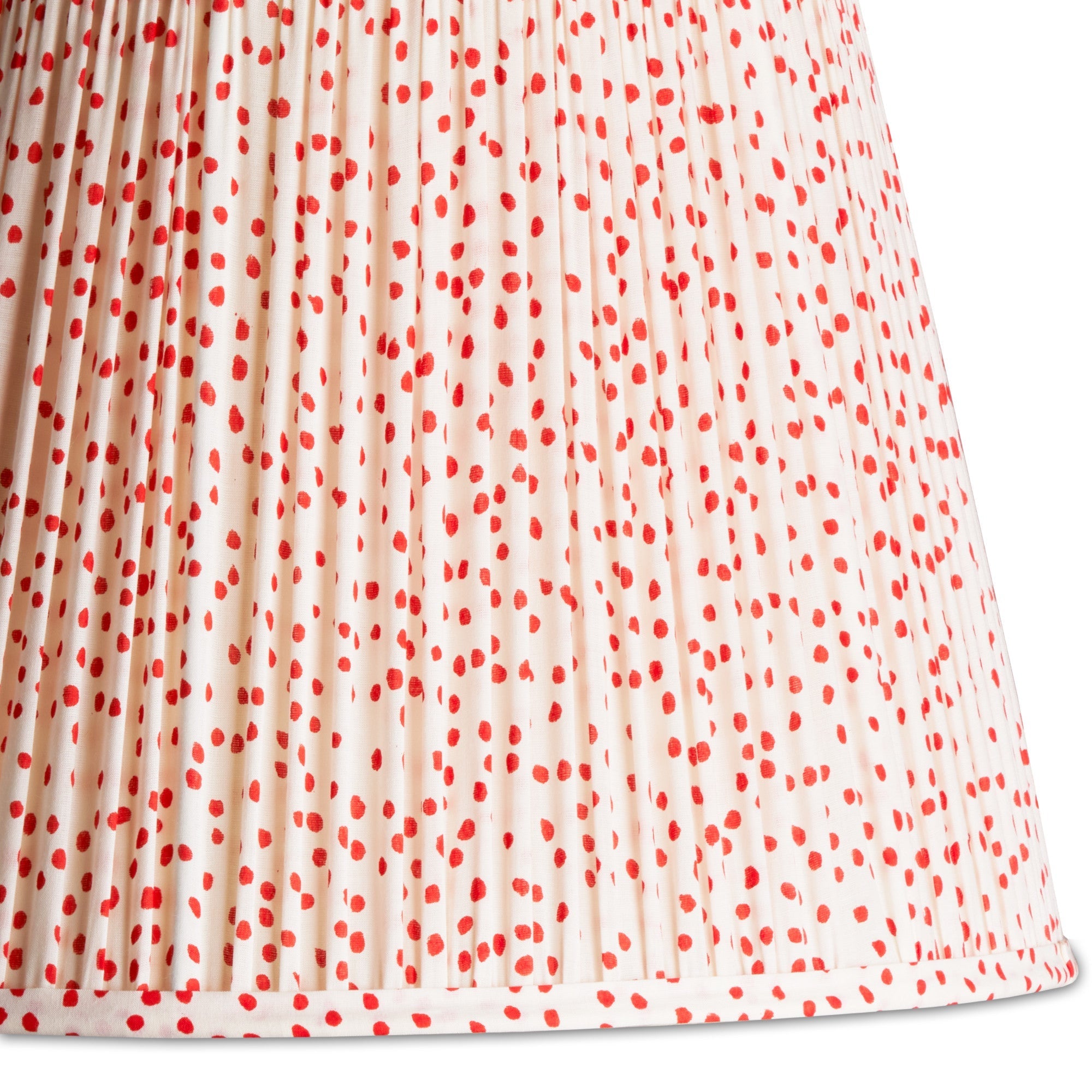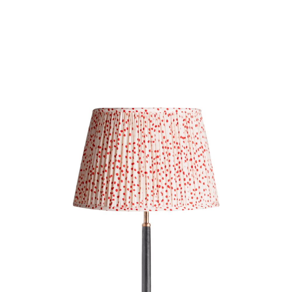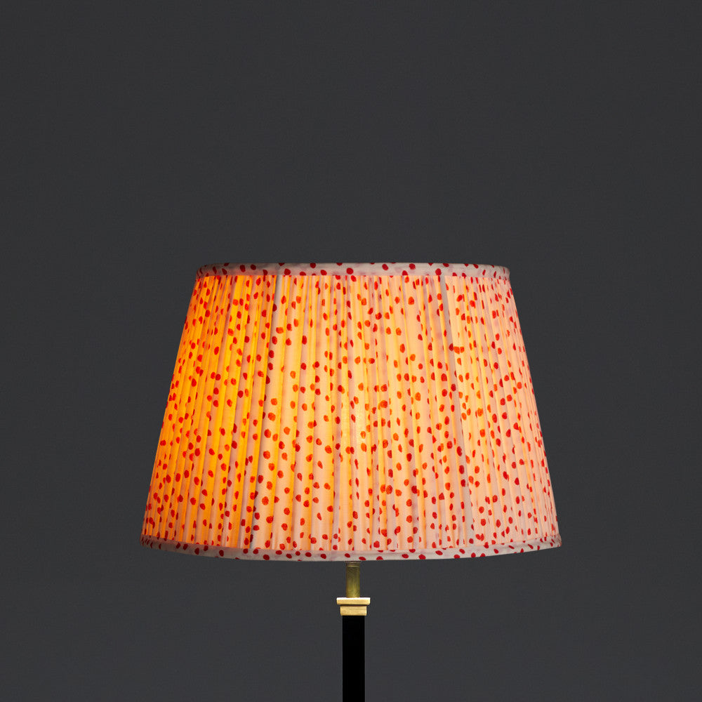 A soft cotton shade block-printed by hand by incredibly skilled craftspeople in a workshop near Jaipur and then pleated and lined - with little spots of orange.