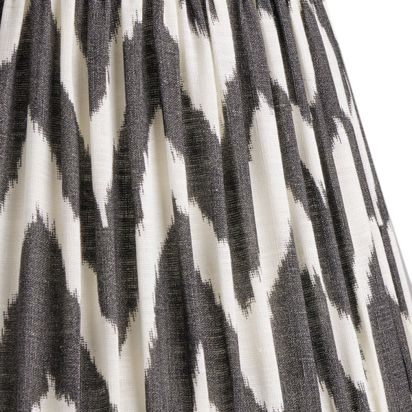 A gathered empire shade in a striking black and white zig-zag ikat pattern. Hand-made from soft natural linen with a warm cream fabric lining. Simple, elegant, timeless and always popular.