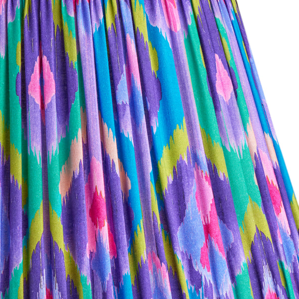Matthew has been drawn to Ikat prints throughout his career in both fashion and interiors. They are so versatile and can easily coordinate with so much. Here the purple Mala Ikat takes on a loose, painterly quality casting kaleidoscope flashes of colour across the pleated shade.