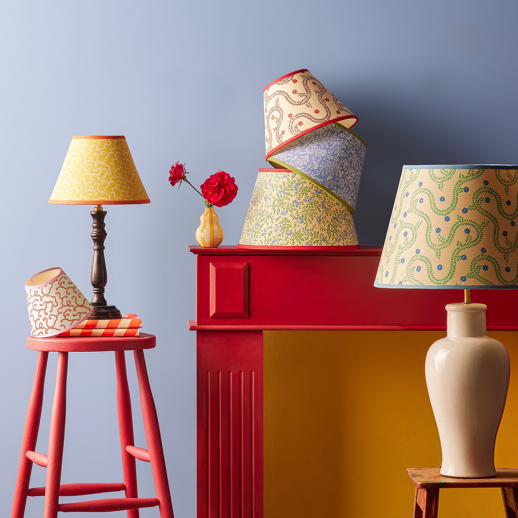 40cm straight empire shade in spicy mustard hand blocked 'squiggles' by ellen merchant see dimensions