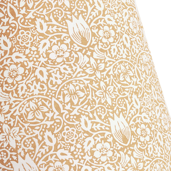 William Morris, a close friend of master engraver Emery Walker, crafted the lively 'Borage' floral pattern in 1883, drawing inspiration from nature. Beloved by bees, this pattern is a lively, spirited floral design with multiple axes of symmetry, creating a captivating focal point in any room. We've carefully block printed 'Borage' onto lampshades, capturing Morris' original technique's timeless charm and unique variations, as once seen in Walker's Hammersmith home-a beautiful blend of history and craftsmanship.