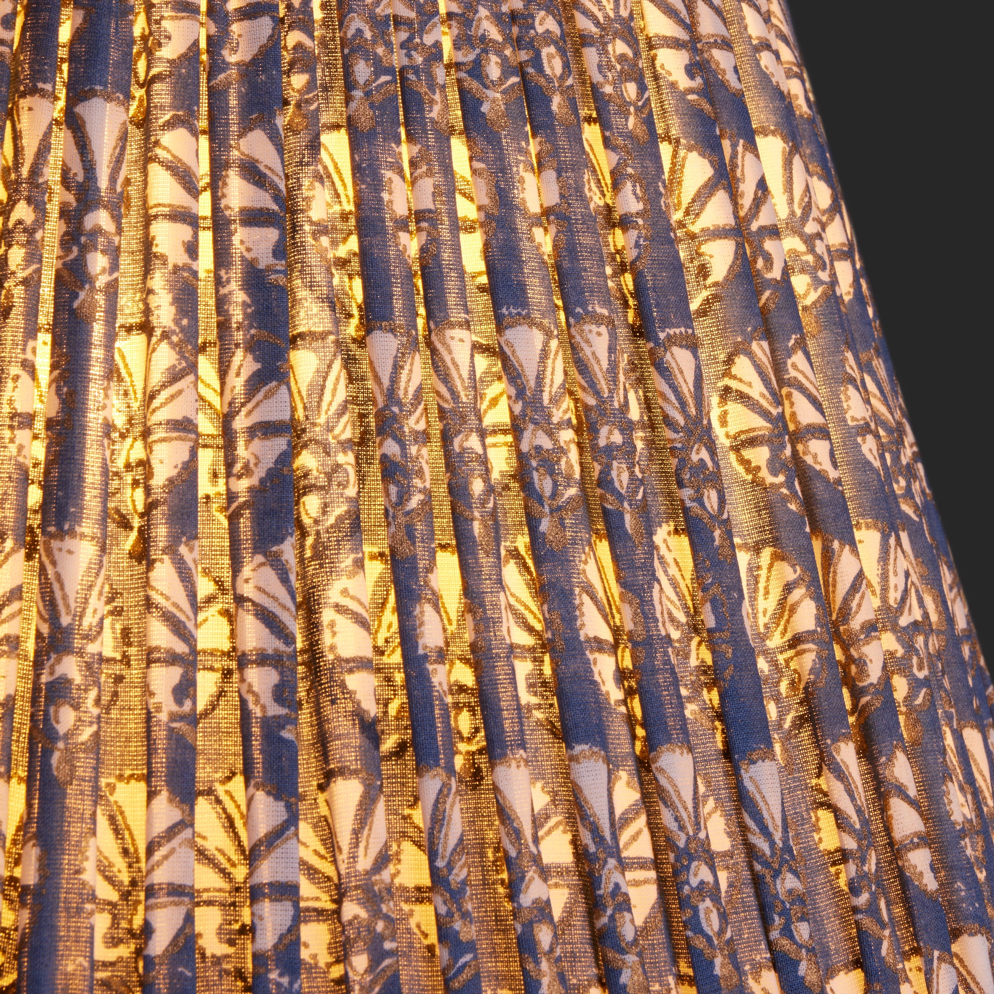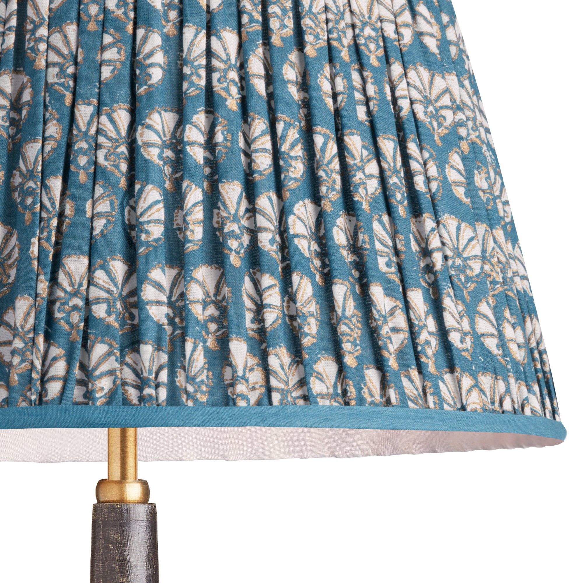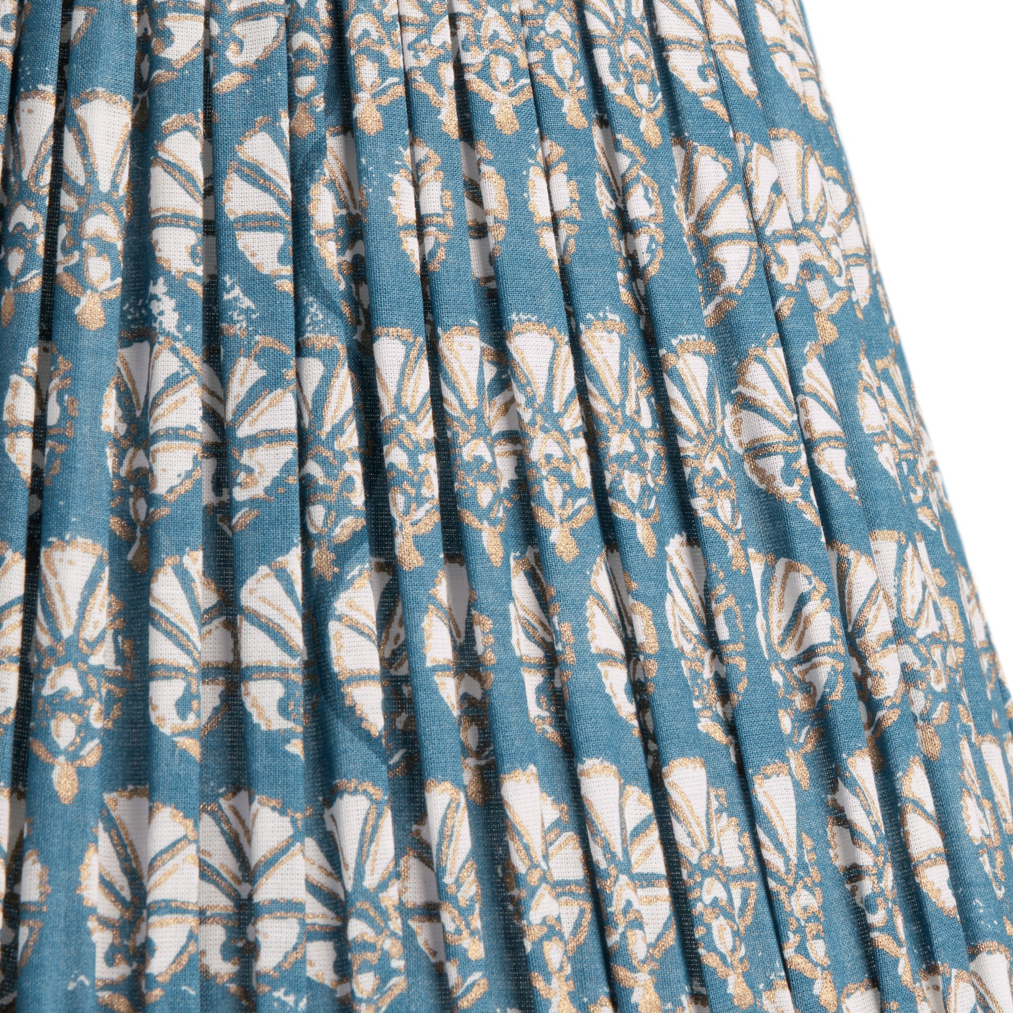 45cm straight empire gathered lampshade in turkish blue dervish block printed cotton see dimensions
