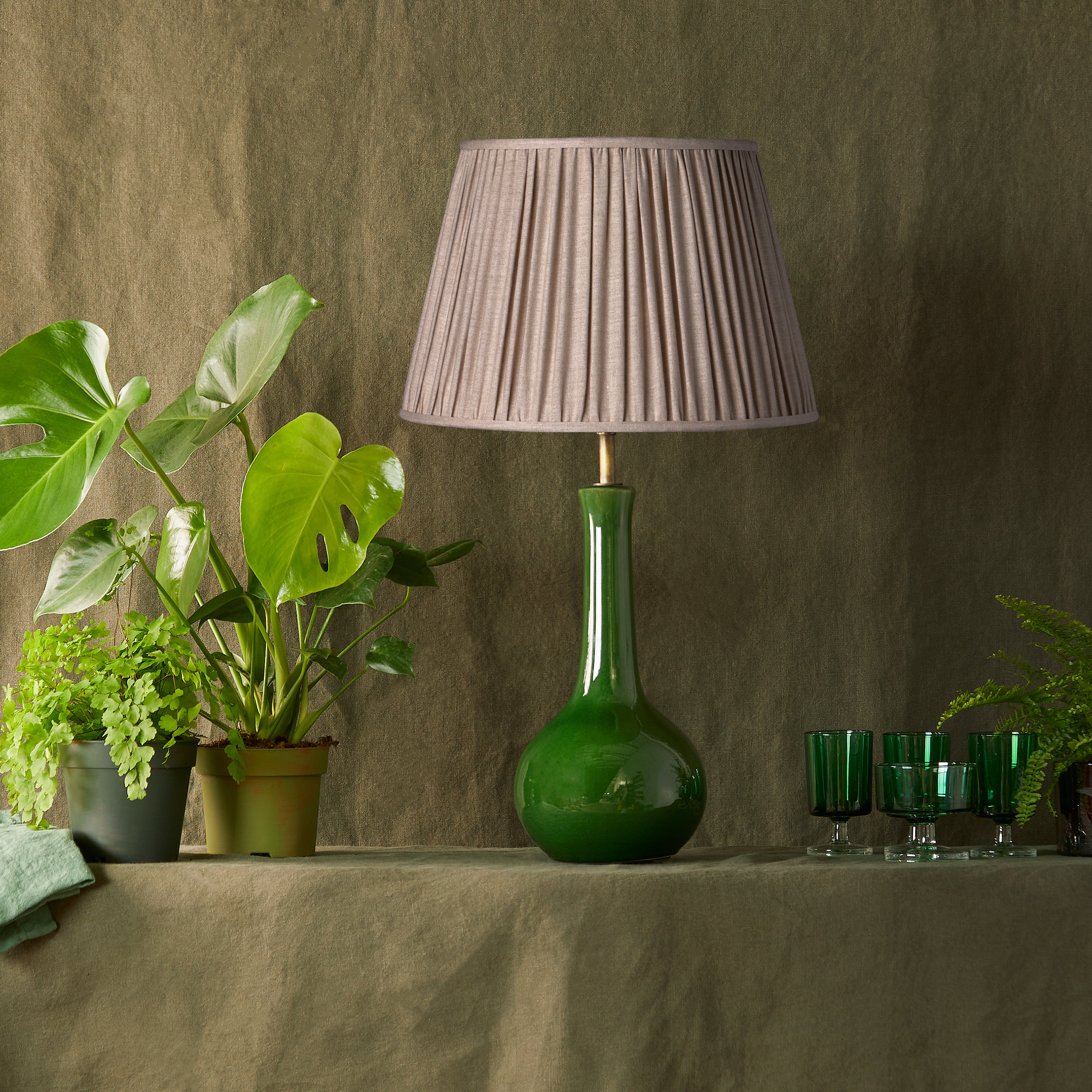 in pleated natural linen