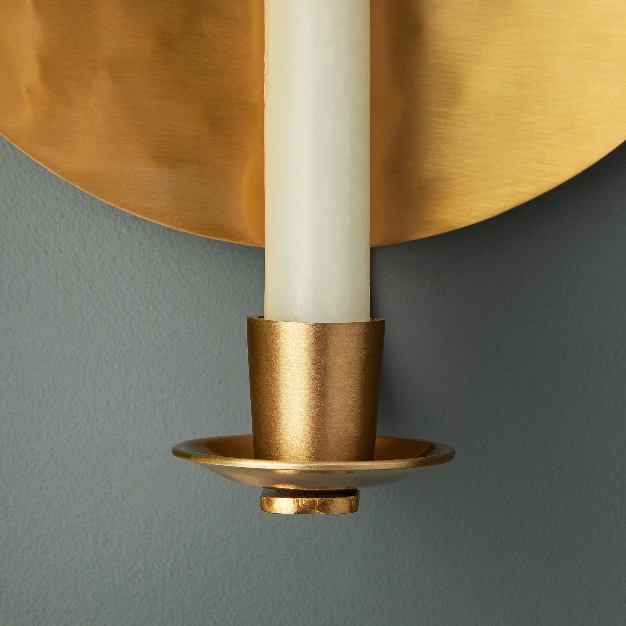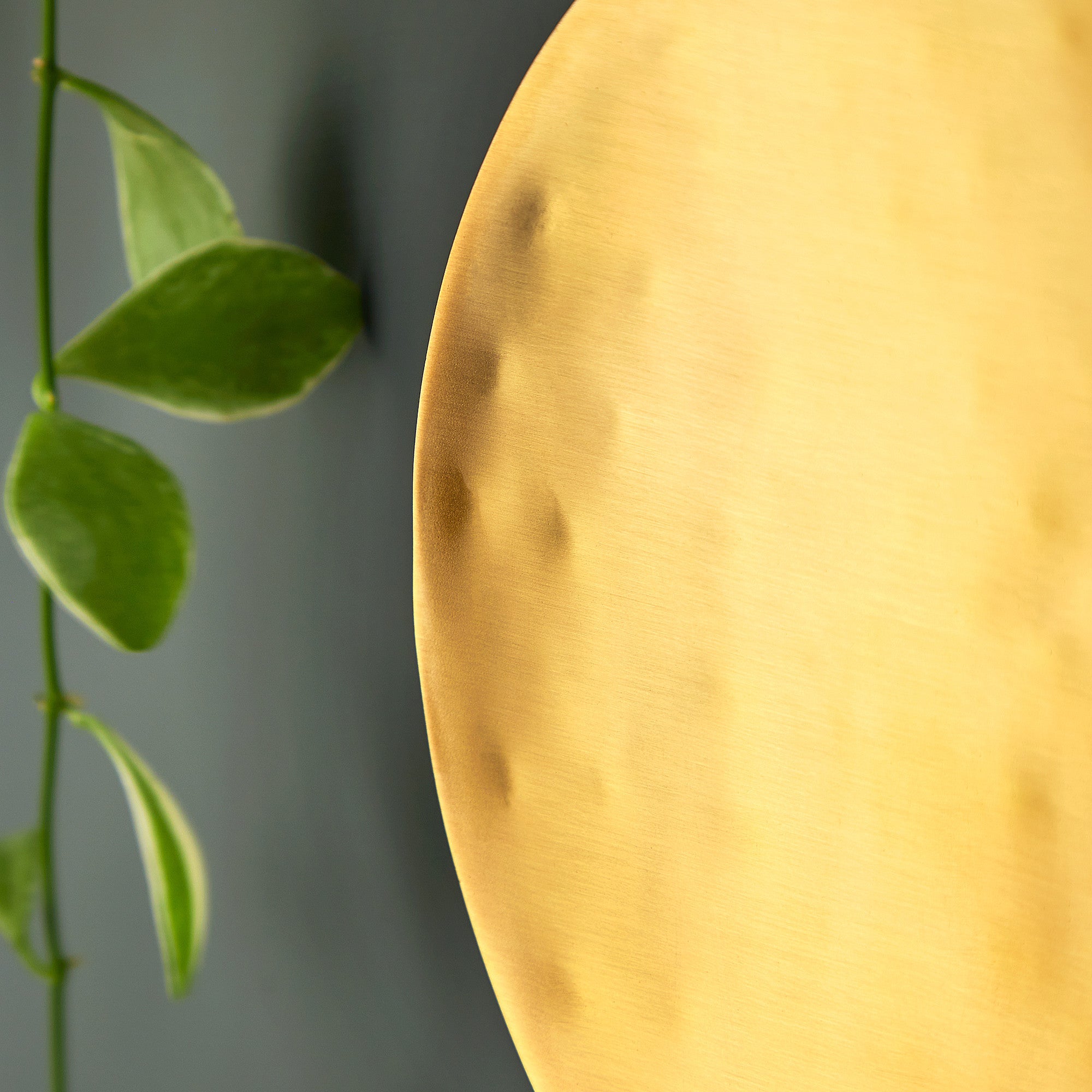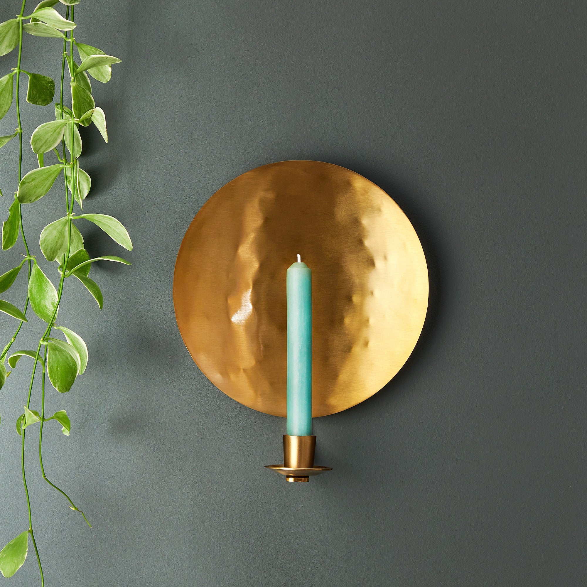 Sometimes the simple things are the best. No frills, nothing fancy, but beautifully made and elegantly finished. Our Celeste wall mounted candle holder is a concave moon of lightly hammered brass with a subtle antiqued finish...with or without a candle it’ll lift the spirit (as opposed to summon the spirits...).