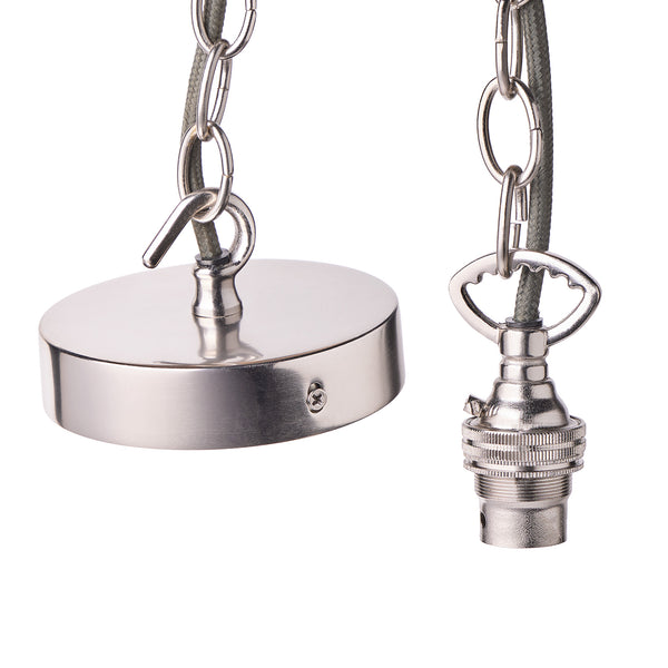 For heavier pendants of over 1.8kg. Very nice looking, with a stylish ceiling rose and our olive green flex. 1.2 metres provided