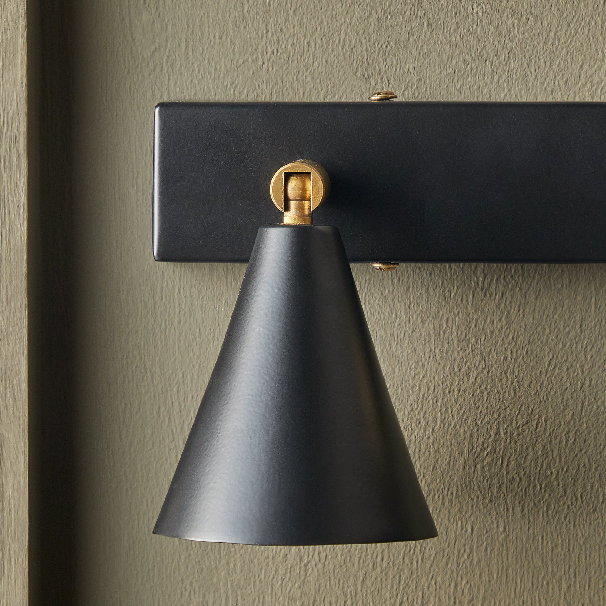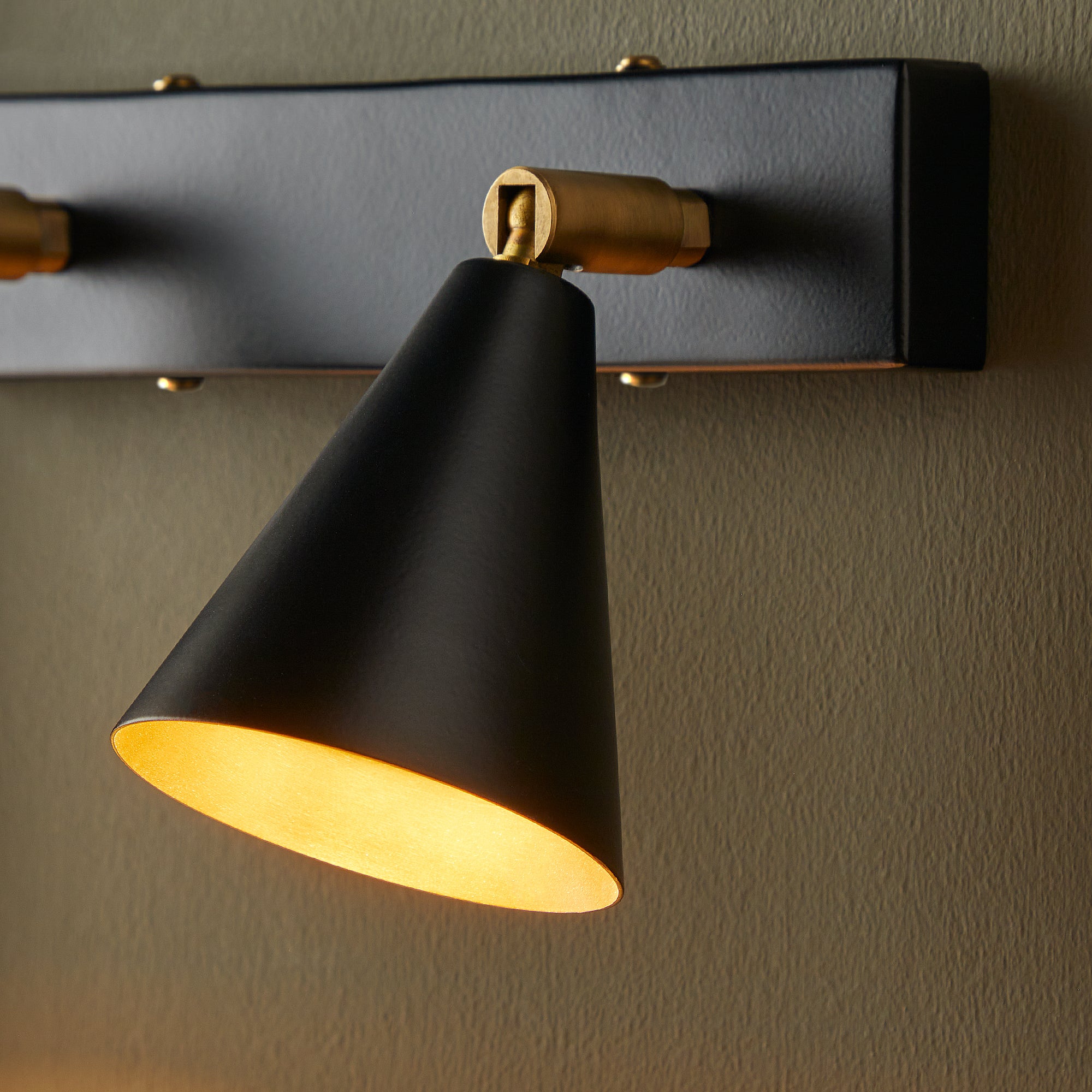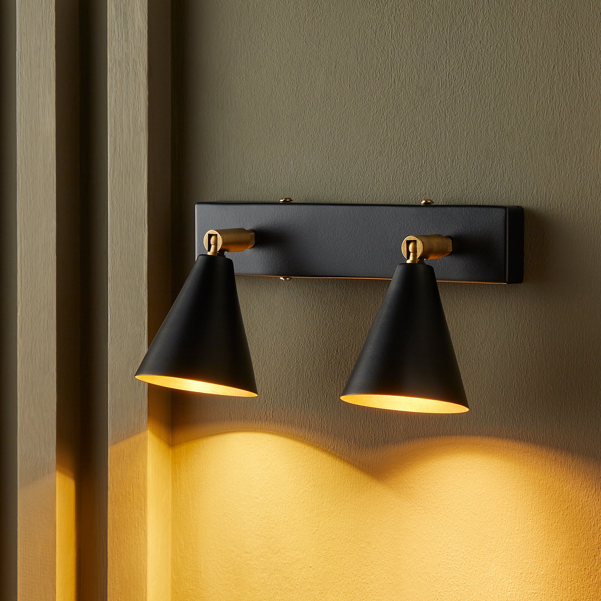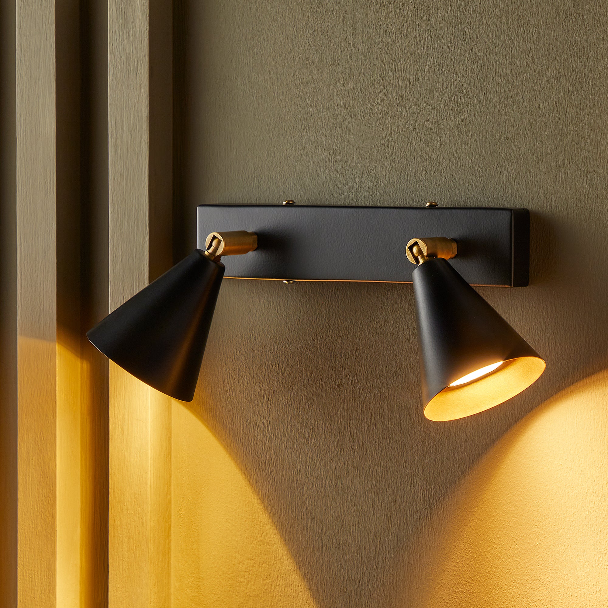 A double spotlight with a black finish that gives a slightly more generous allocation of light than its cylindrical cousins. Multi-directional for full versatility any which way.