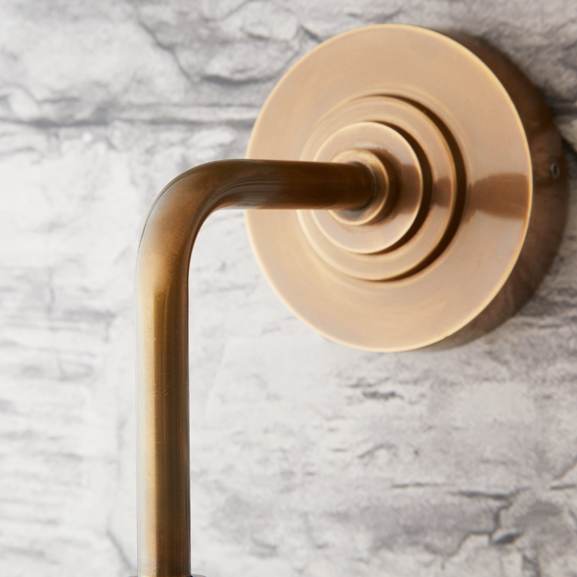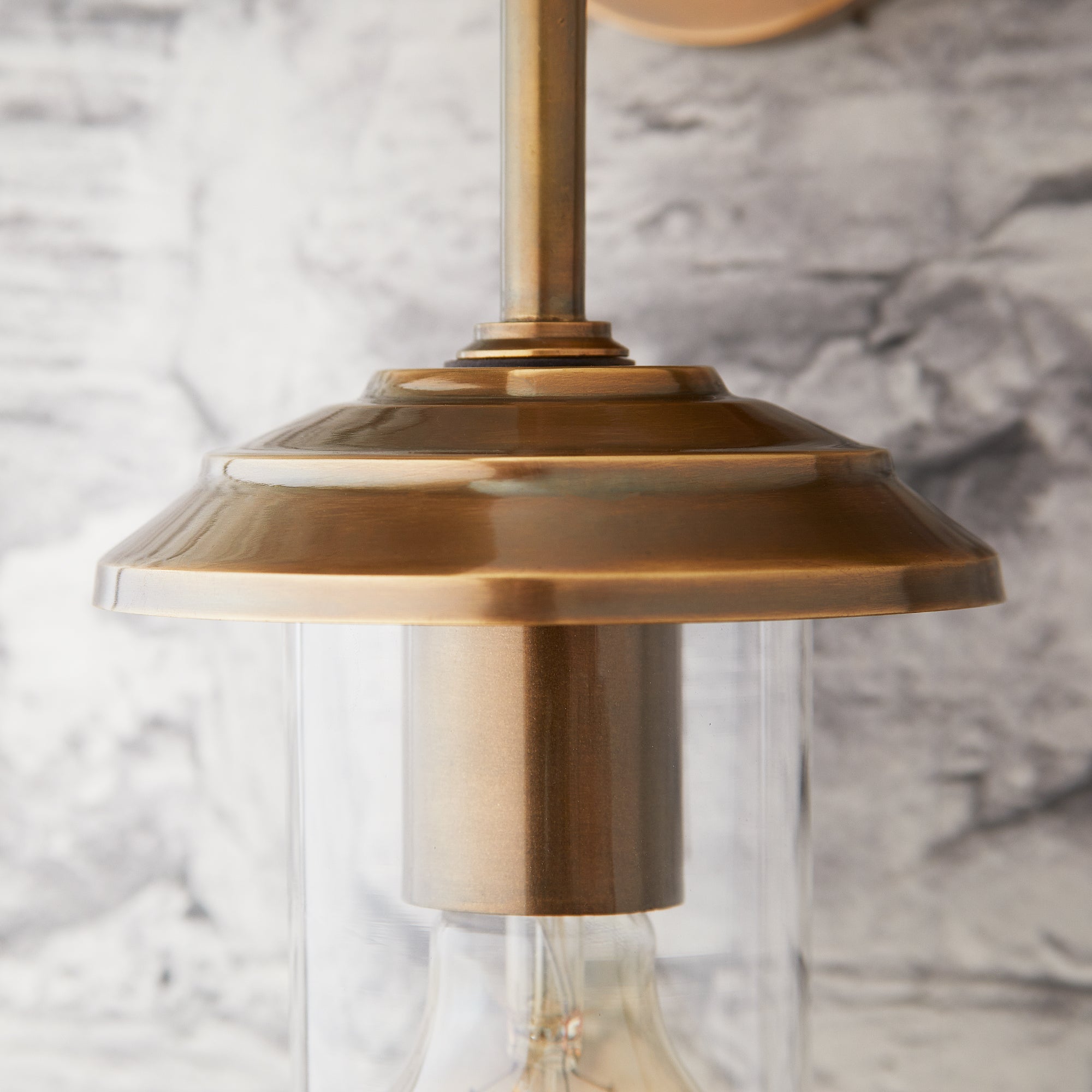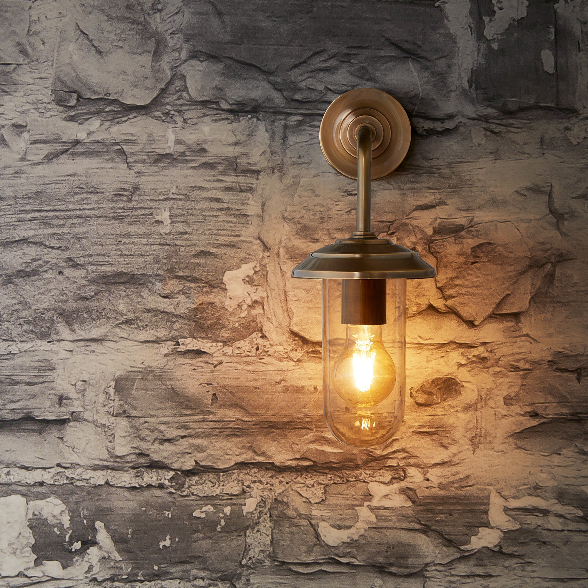 The concentric rings so beloved of art deco design, reproduced in a pure brass wall light. It will sit happily in your porch or elsewhere in the garden, or equally well if you bring it inside to adorn a bathroom or a cloakroom. Casts lots of ambient light.