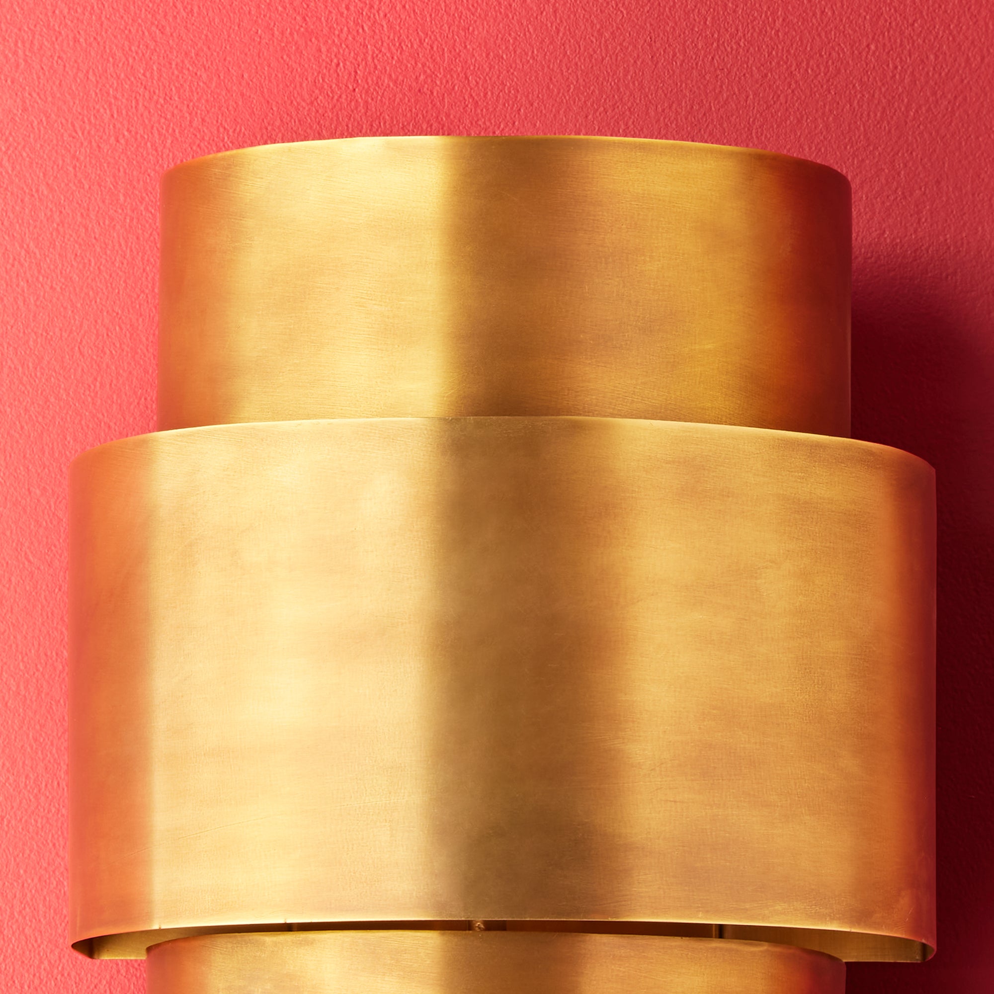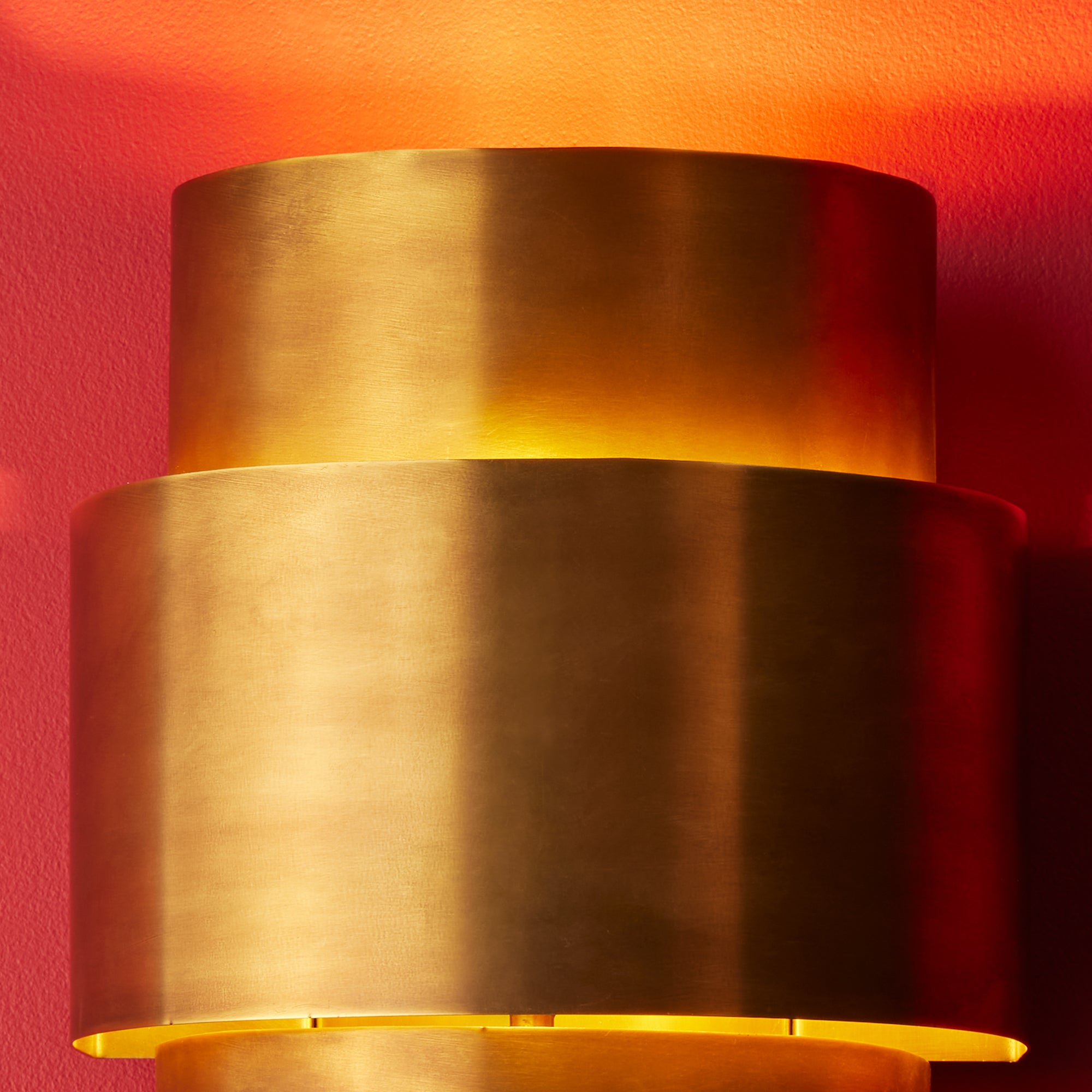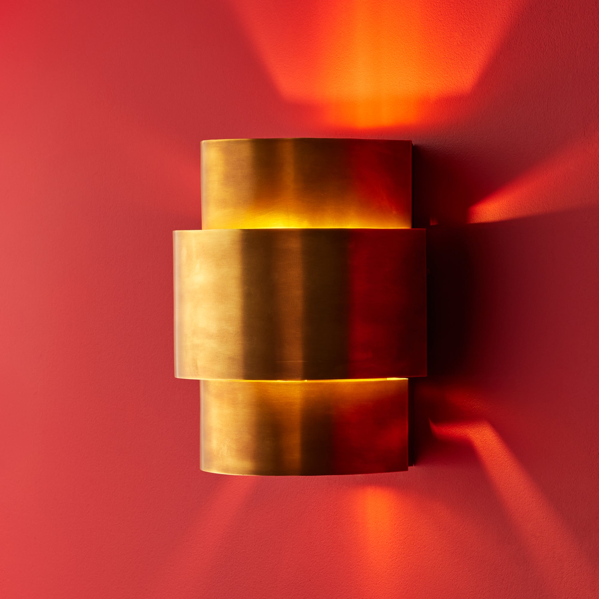 The three concentric brass rings allow for light to emanate from between them as well as from the top and bottom. An achingly cool mid century vibe that transforms and transports any space.