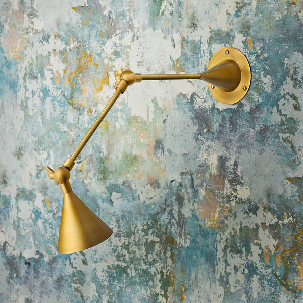 An endlessly versatile wall light that will light up corridors, kitchen workspaces or a favourite reading nook. Finished in beautiful antiqued brass, they look particularly striking in rows.