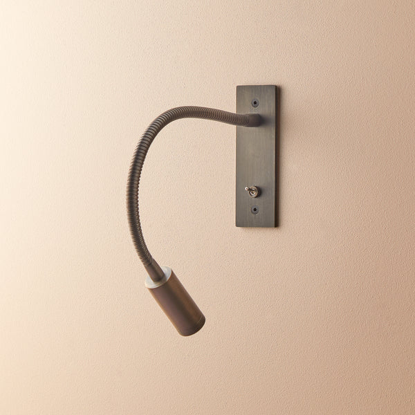 As it says on the tin....a flex wall light. Thin bendy arm, with directed LED, finished in brushed bronze. A bedside must have.