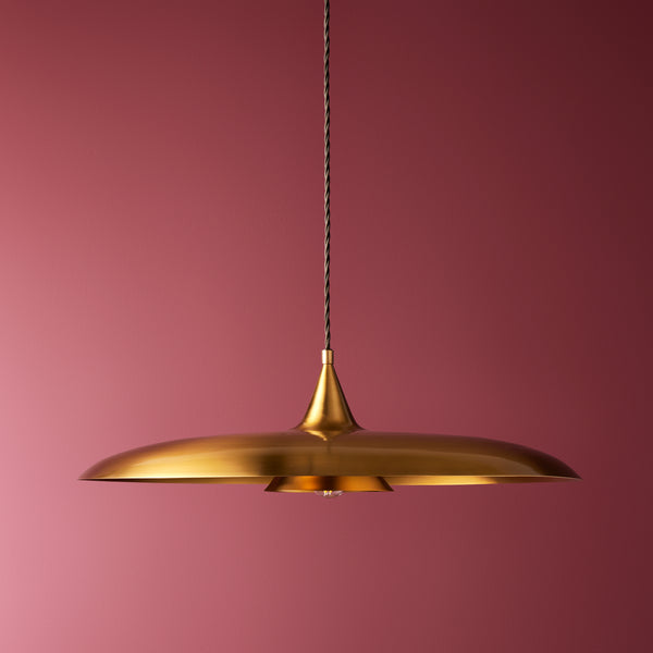 It's more a hovering inverted saucer than a flying one, but you get the drift. A glorious pendant, made from 100% pure brass and finished in our classic antiqued finish.