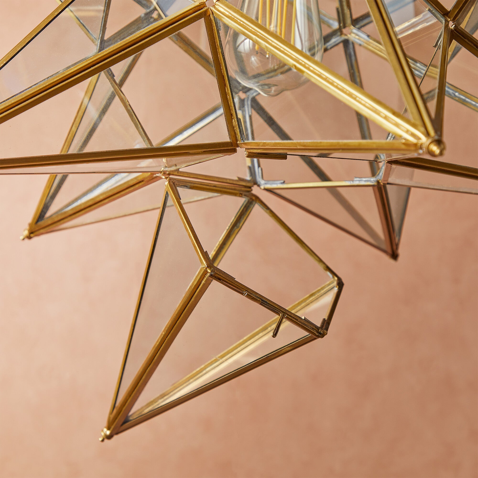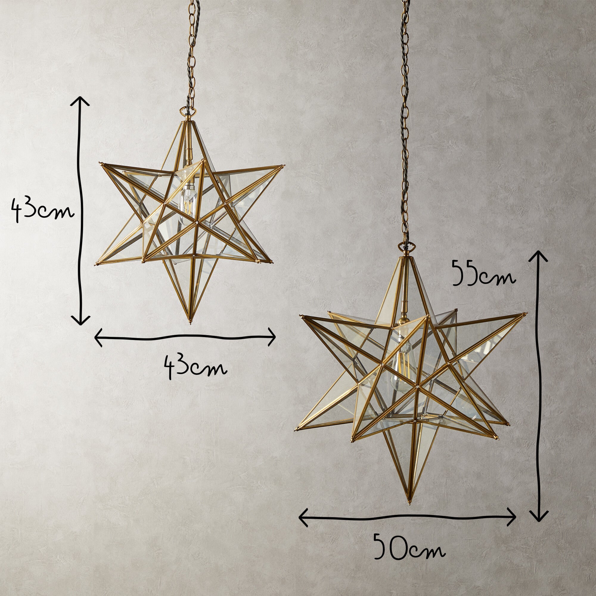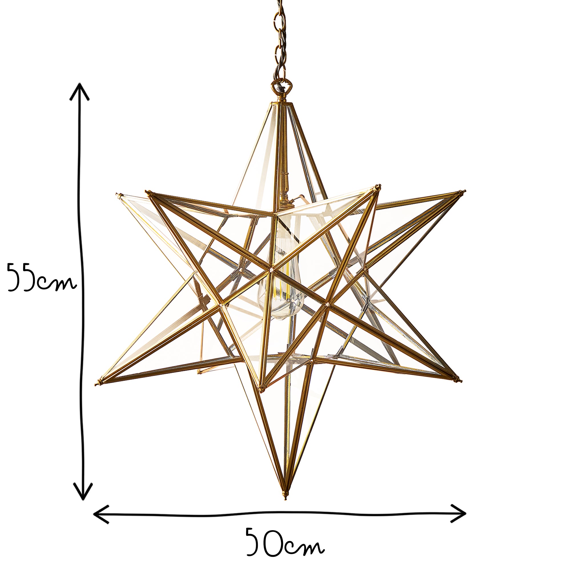 Twinkle Twinkle little….star pendant. Antique brasswork with clear glass. A very classy centrepiece. Supplied with olive green flex, brass chain and ceiling plate.
