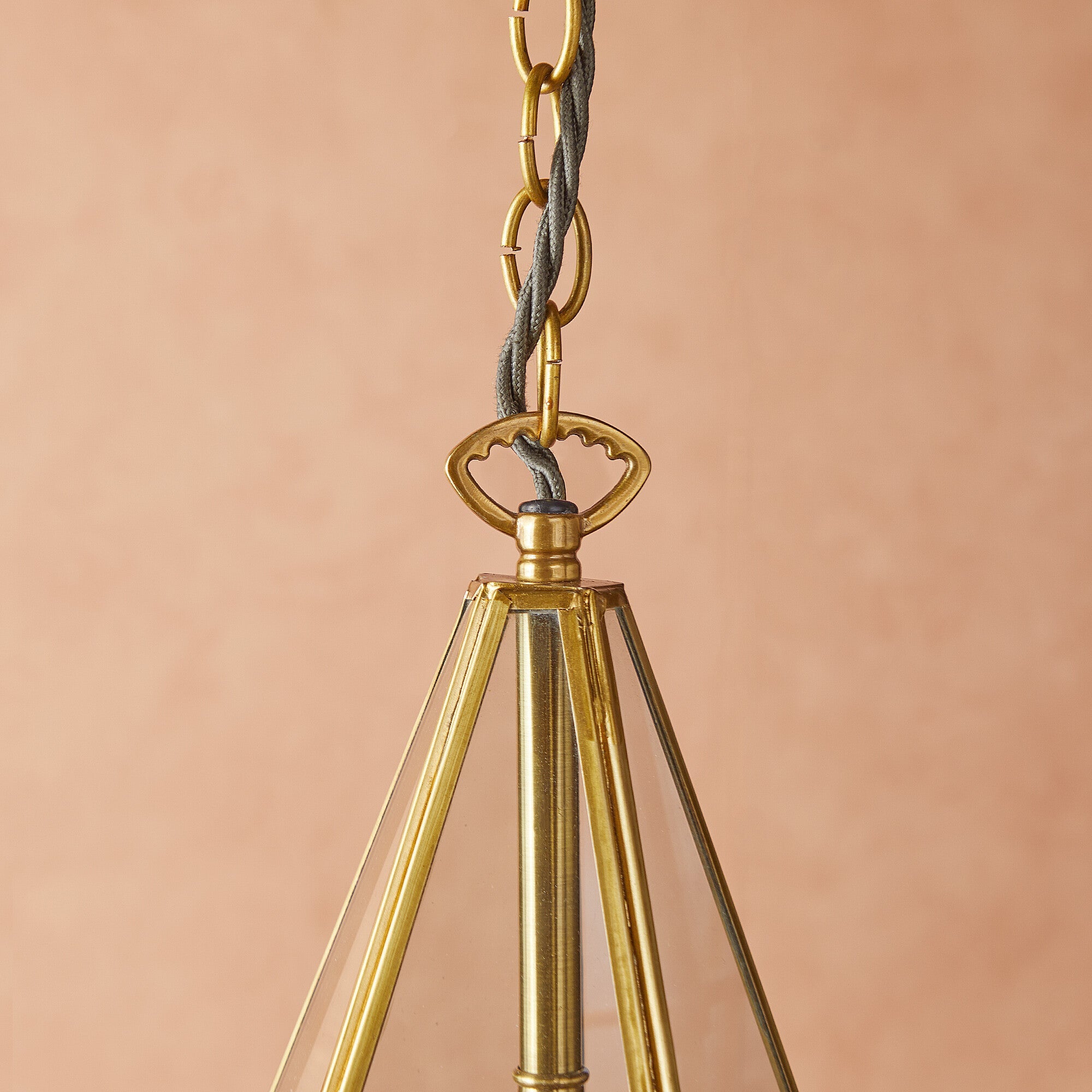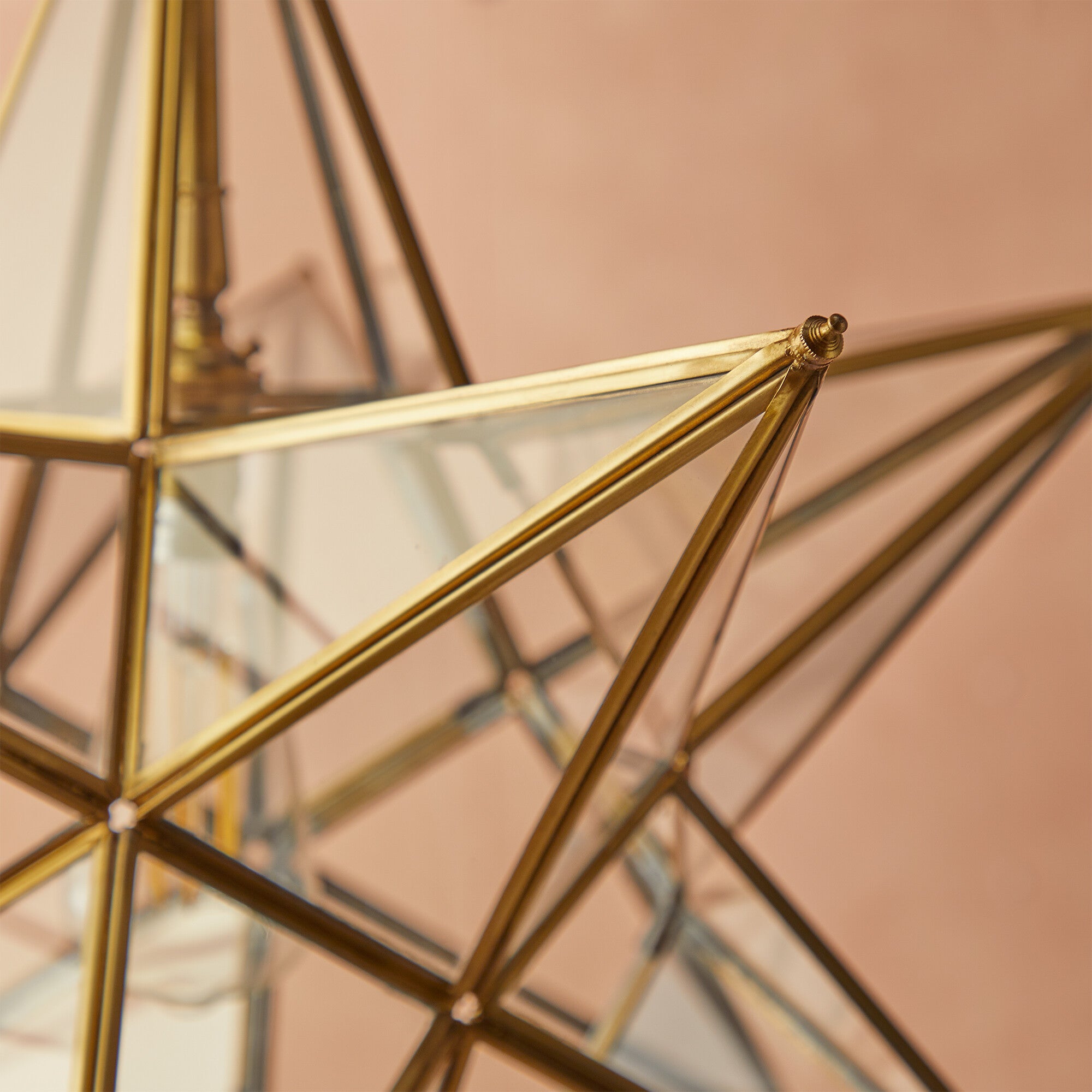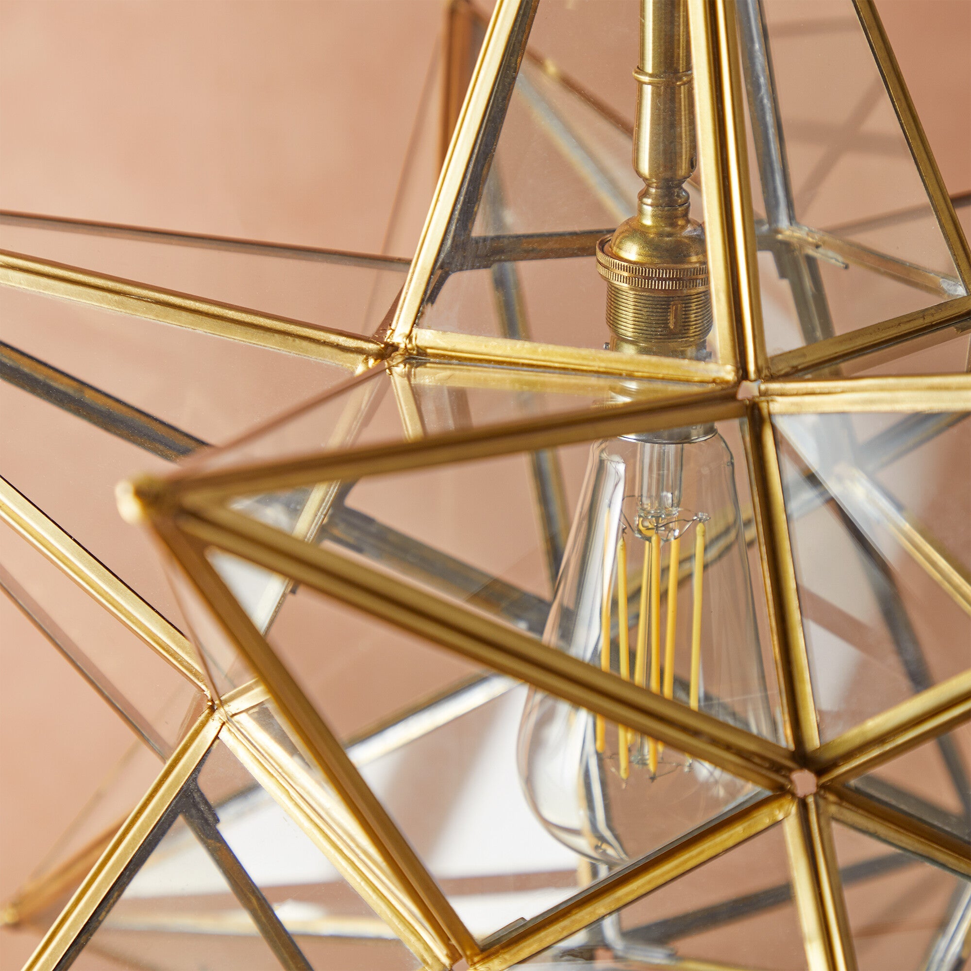 Twinkle Twinkle little….star pendant. Antique brasswork with clear glass. A very classy centrepiece. Supplied with olive green flex, brass chain and ceiling plate.