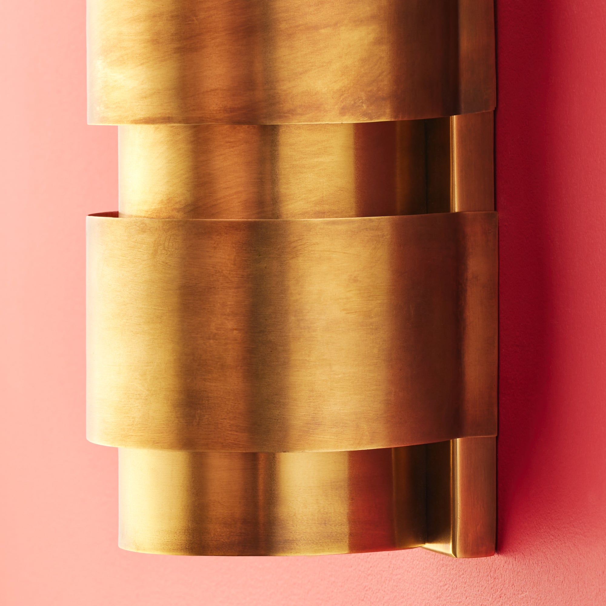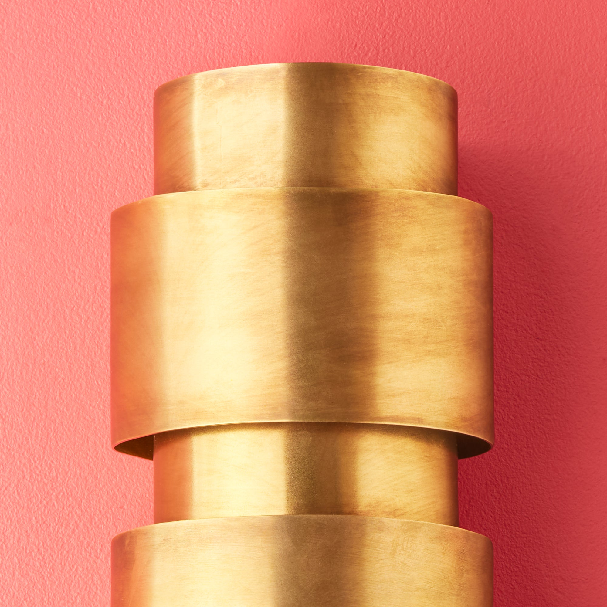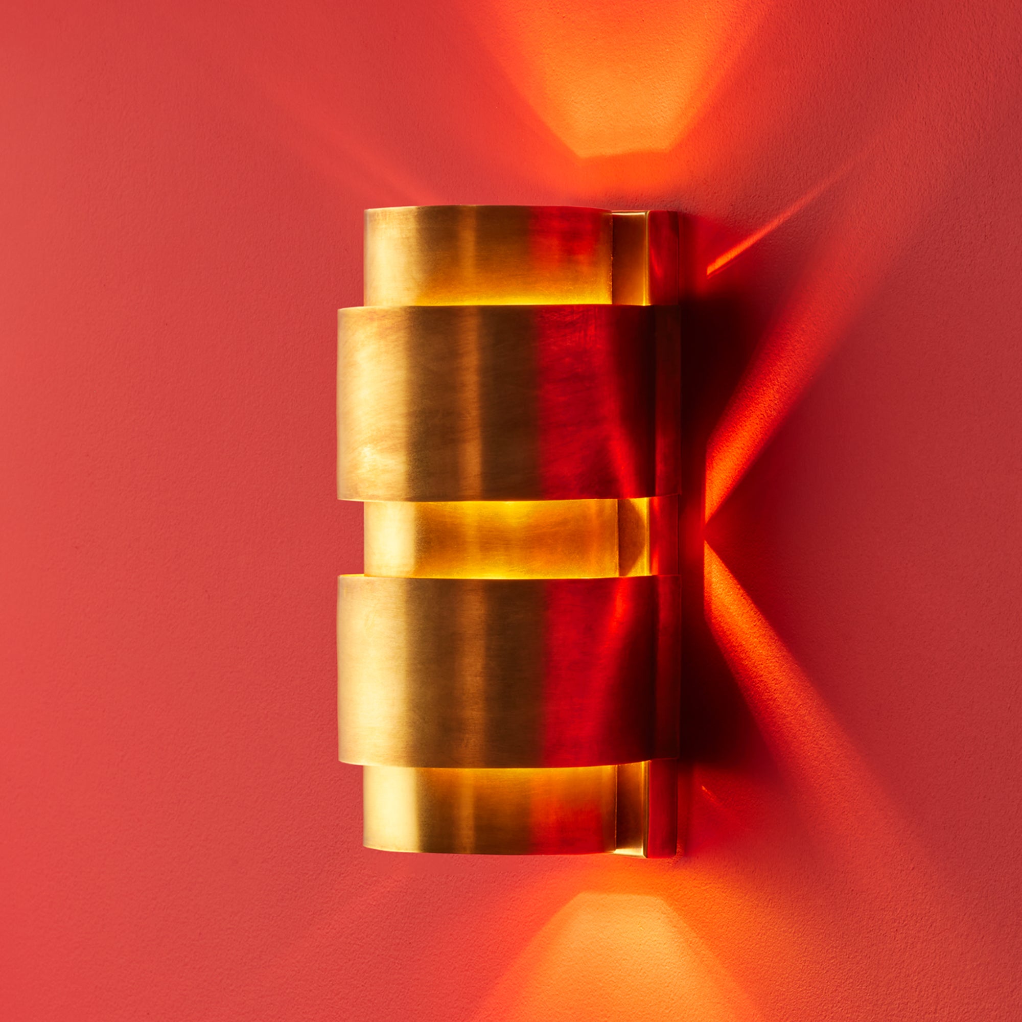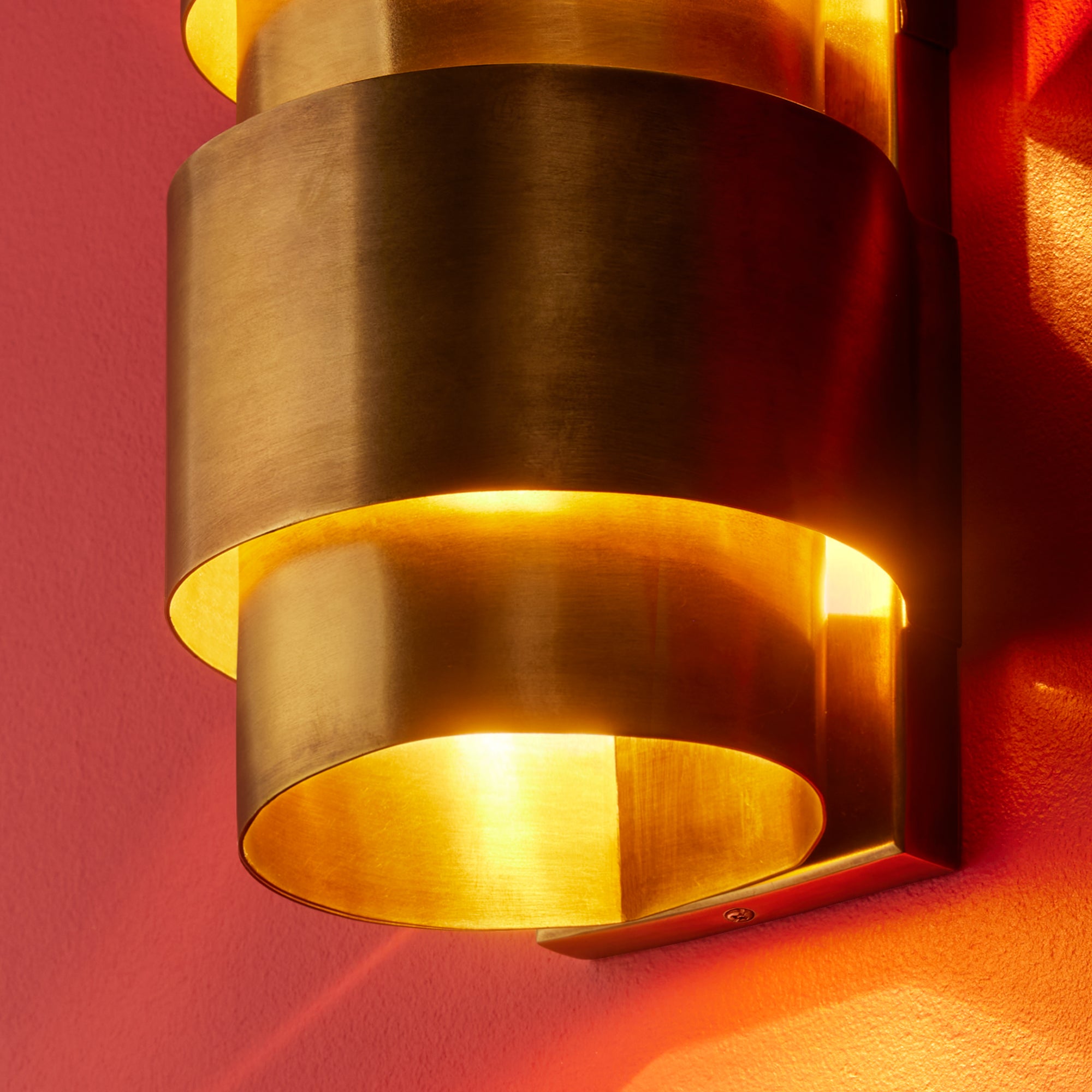 The five concentric brass rings allow for light to emanate from between them as well as from the top and bottom. An achingly cool mid century vibe that transforms and transports any space.