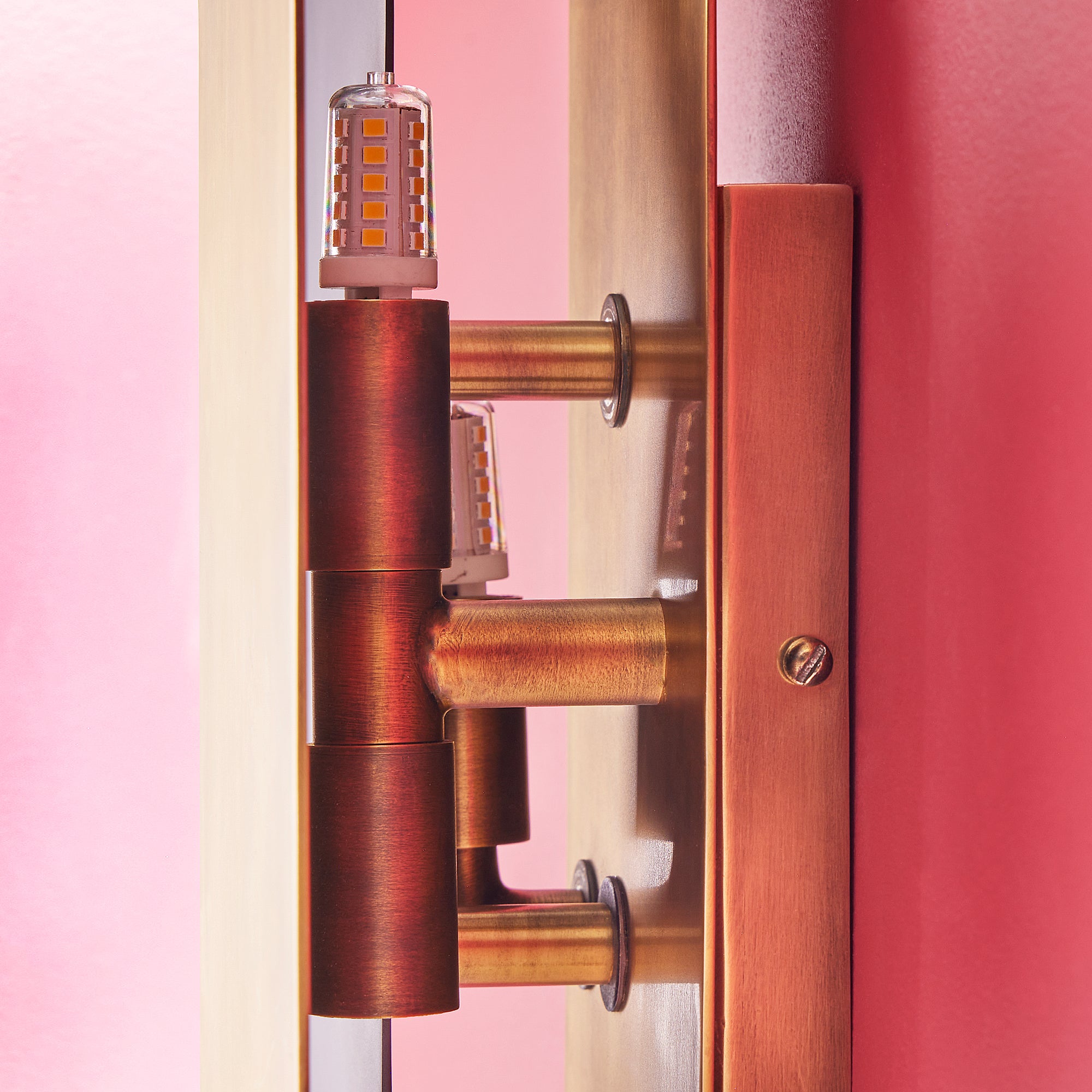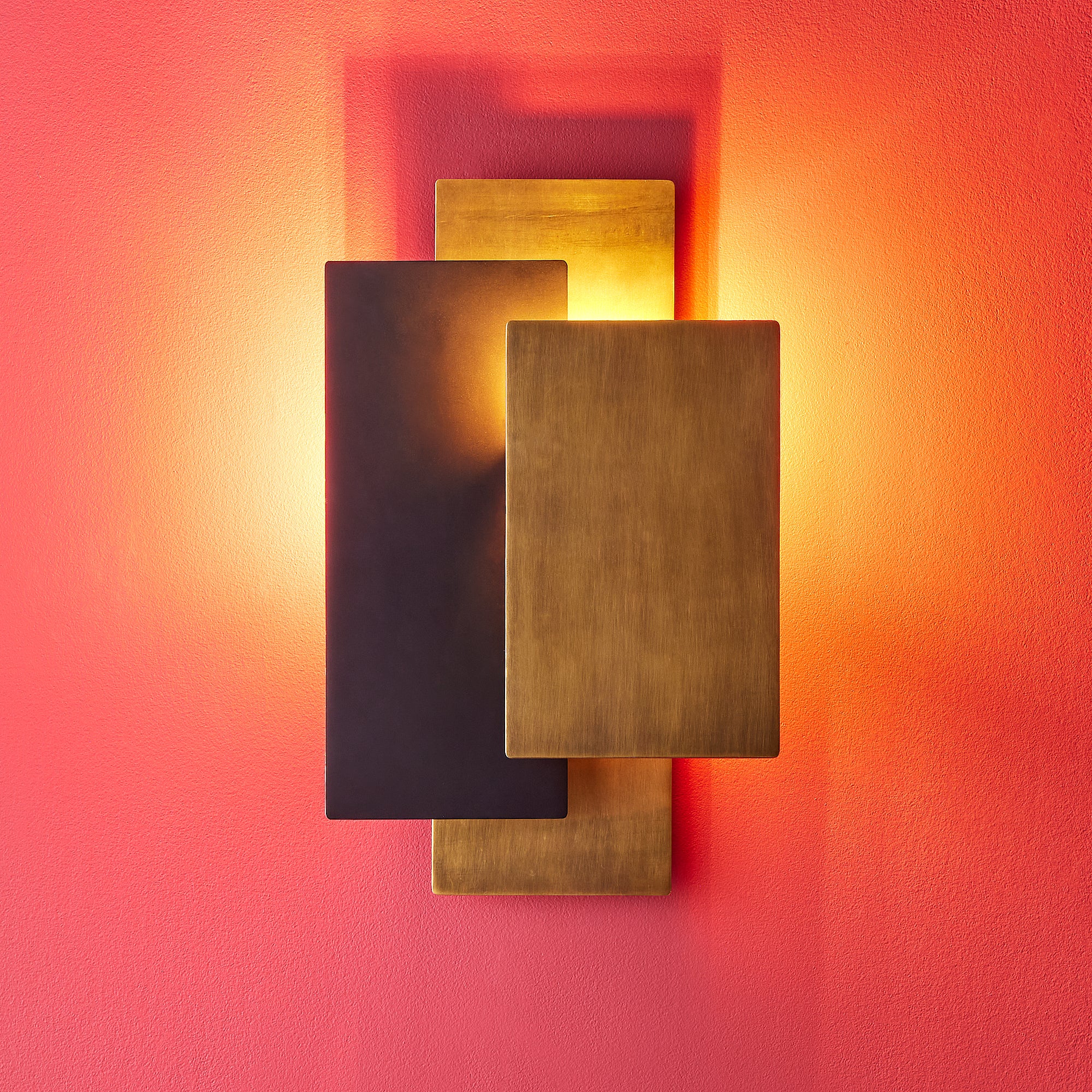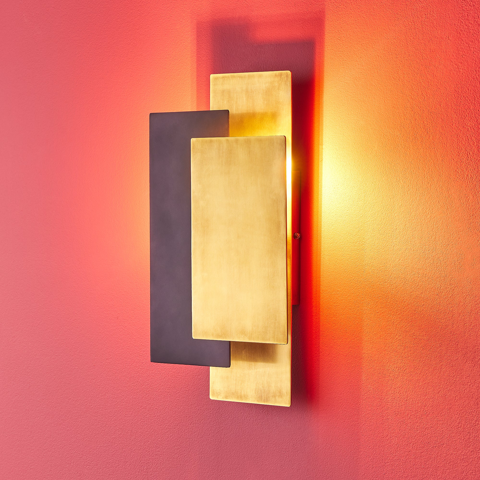 The Gustav is part of our range of back lit, reflective, sculptural wall lights. It produces a super subtle and comfortable light reflected off the back wall and bouncing off the other metal plates. It has become a bestseller almost immediately.