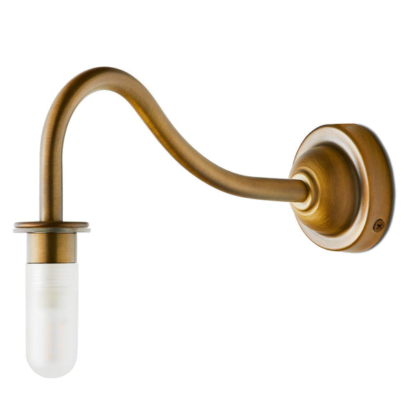 ip44 swan neck wall fitting in antique brass see dimensions