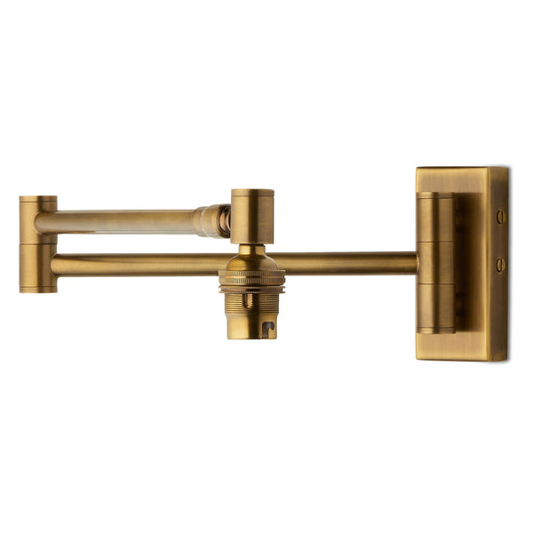 When not in use, our Lacey wall fitting sits neatly against the wall. Perfect and very stylish as an extendable bedside reading light. Solid brass in a beautiful antiqued finish.