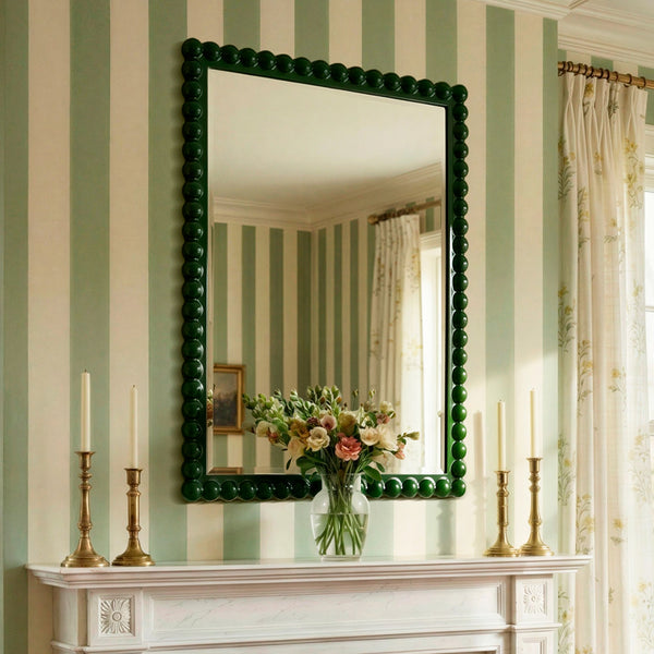 Charming by name, charming by nature - just with a little more of it to go around. This larger version keeps the same playful, beaded wooden frame, now finished in a rich green that adds depth as well as cheer.
