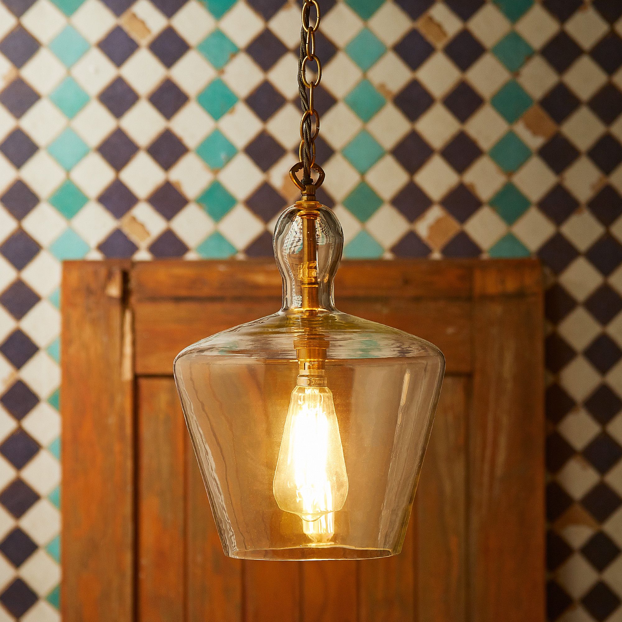 As with the Tarte Tatin* in the culinary firmament, our Demijohn pendant is one of those happy accidents. It was never meant to be quite this shape but when the glass blower first showed it to us, we looked at it and went “hang on a moment...that’s brilliant!”...and a couple of years later it firmly falls into our bestseller category.