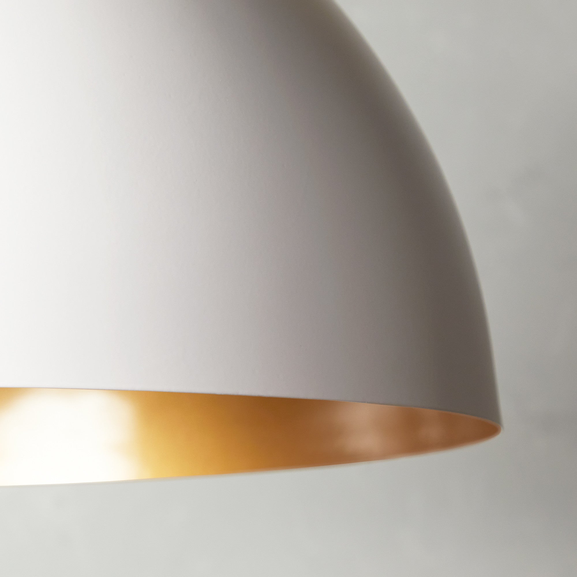 Whoever suggested that we called our Goodhew light after the shiny topped swimming legend of the 1980 Olympics, should be ashamed of themselves. That both have a perfect, smooth, shiny dome is entirely coincidence. In some ways, there is nothing clever about these pendant lights - they are simply semi circular domes - but, trust us, there is a purity, a simplicity and an elegance to them. The large is large, yes, but perfectly manageable, and can easily hang over a small kitchen table or island. The glow from the gold interior is warm and magical (well, not literally, but we are sure you'll like it).