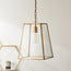 Simple glass pendant with sloped sides, all framed in gently antiqued brass work. The height of elegance.