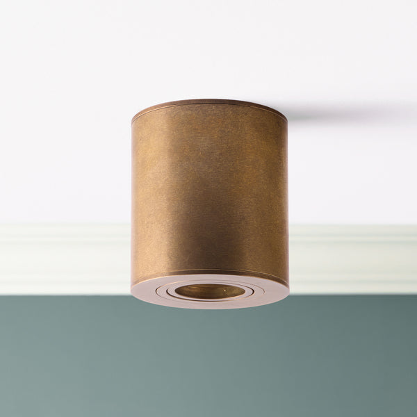 A chunky, weighty ceiling spot in aged brass with a beautifully simple shape and a satisfying swivel. It’s made to be seen – and to help you show things off too.