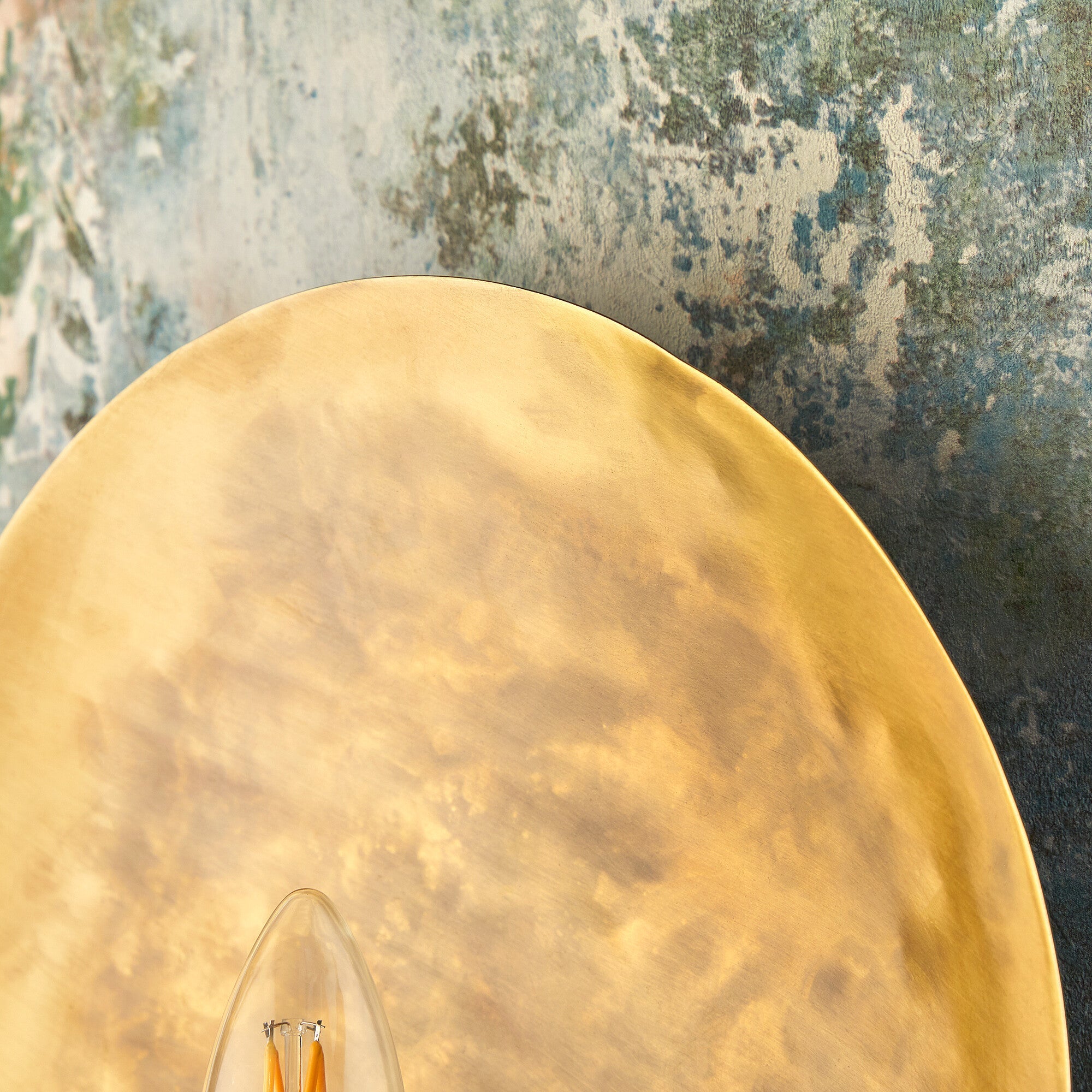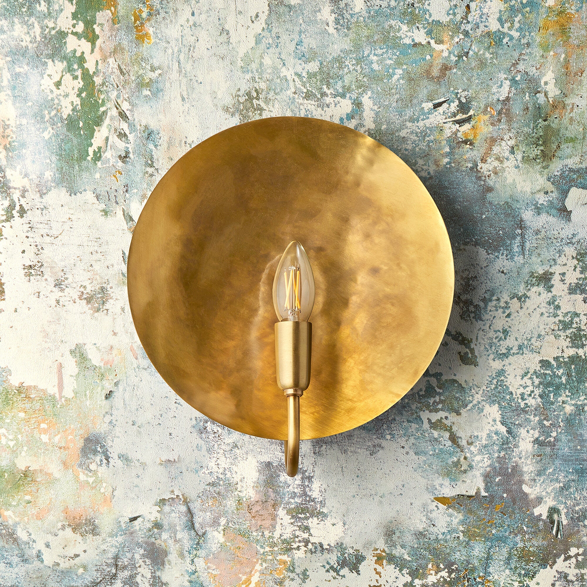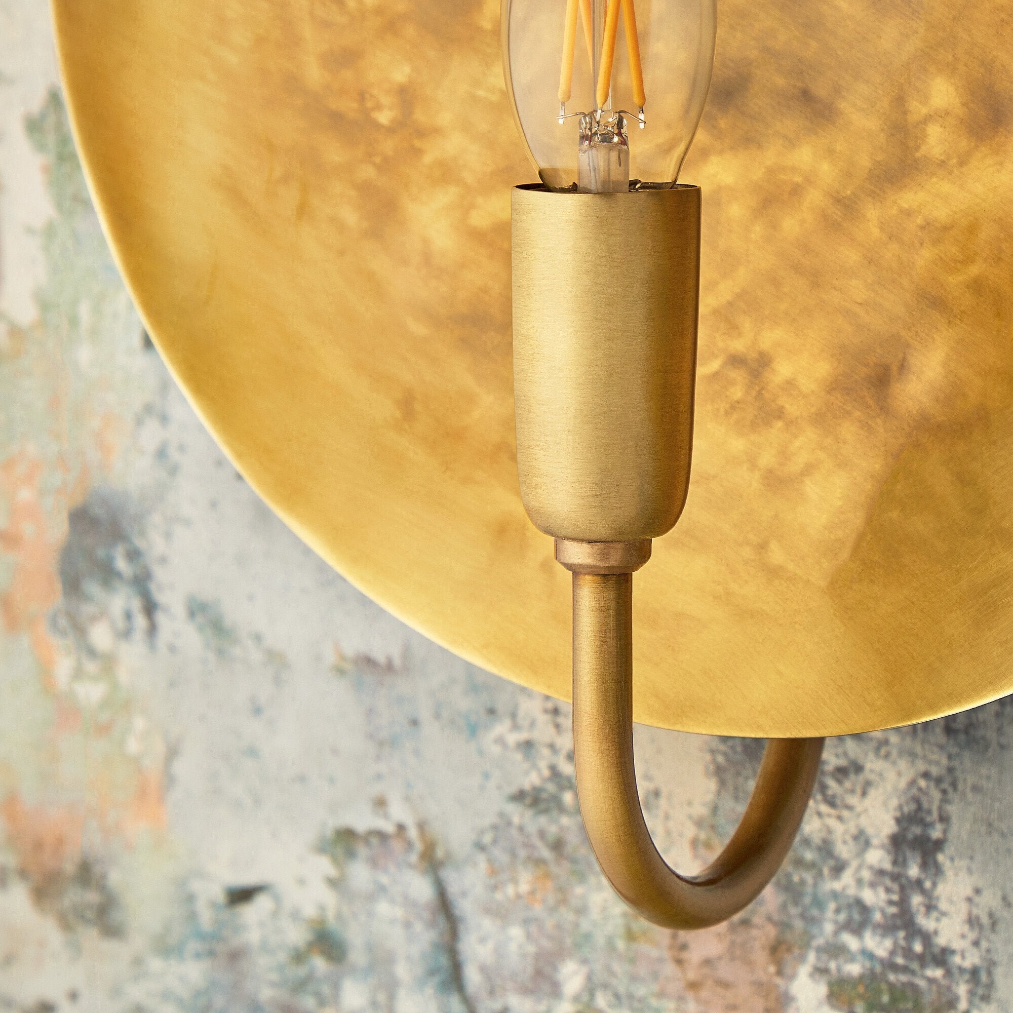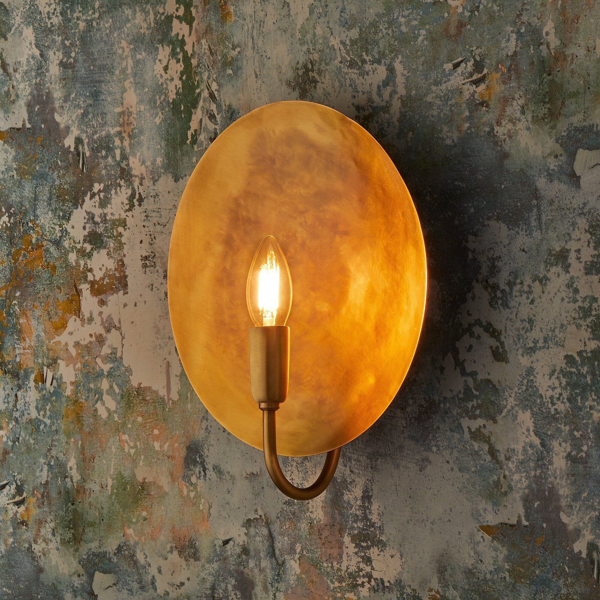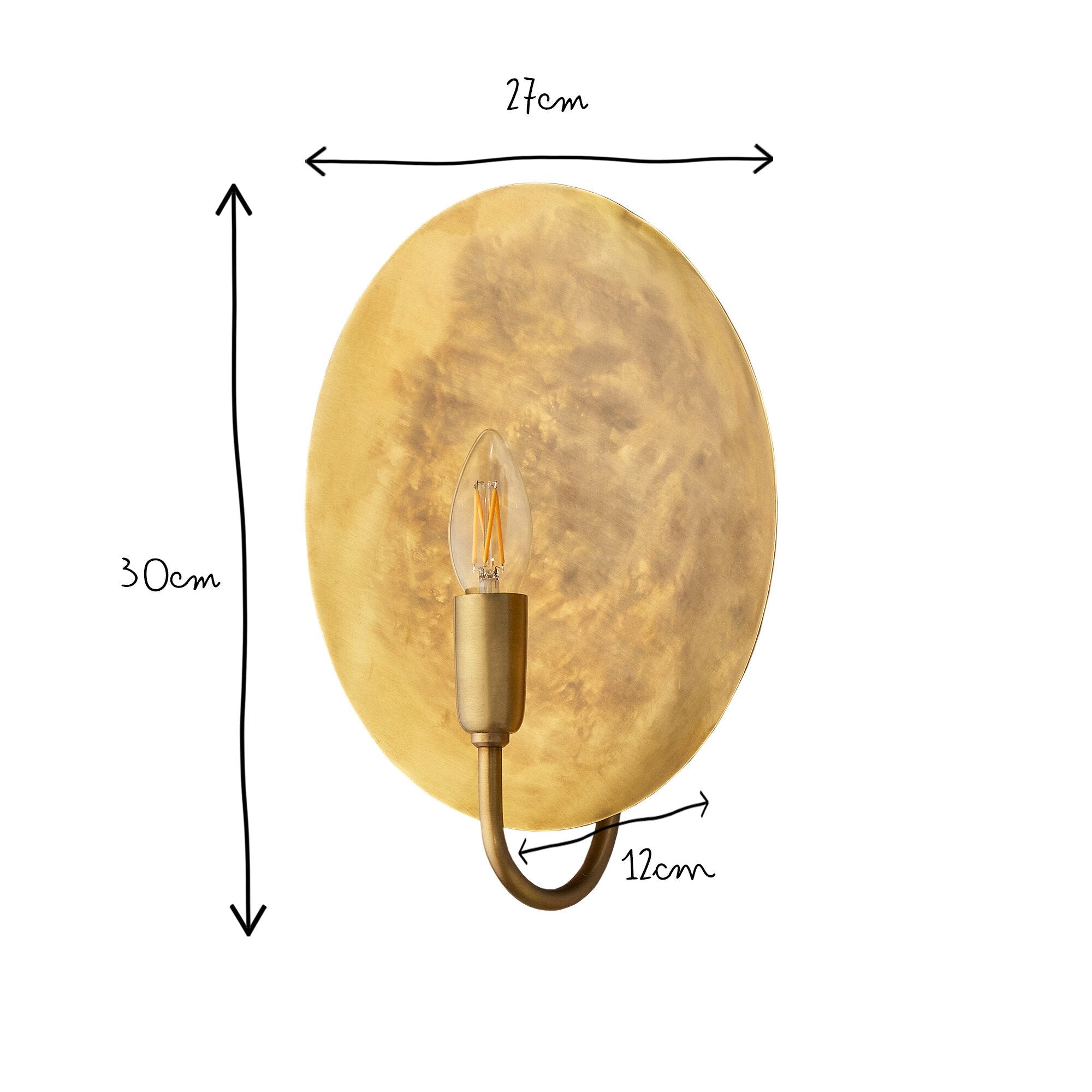 The Owl and the Pussycat would have loved this beautiful Moon sconce. A beaten concave plate of brass with a gentle antiquing produces a lovely warm golden light. Something that you might even dance to!