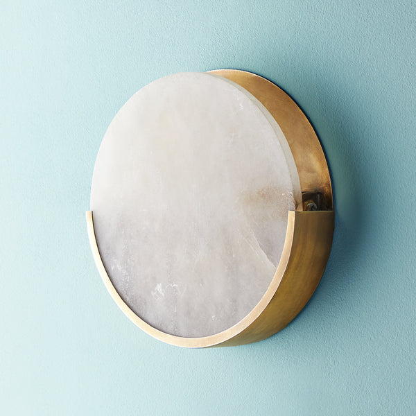 Perfection in its simplicity and symmetry. We keep this as close to the wall as possible, allowing the alabaster to sing its own song, and glow softly in its beautiful gentle natural manner. Alabaster is a splendidly natural material, each piece boasts its own distinctive veining and appearance, making every light an utterly unique masterpiece. Here showing the larger of the Plato family.