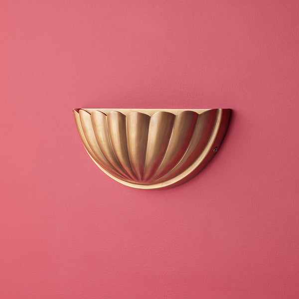Most things of true beauty originate in nature, and the scallop shell has given designers an endless gift. This uplit wall sconce is almost as good as it gets. It's made from a solid piece of cast brass - i.e. molten brass is poured into a mould, which then goes through a series of processes by hand, and ultimately polished to have this antiqued finish. It is not made from pressed brass or iron, as many would be. It's heavy, serious, substantial and utterly lovely. Man and nature in perfect unison.