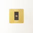 What separates these sockets and switches is that first they comprise of a sturdy single piece of flat, cast brass, rounded at the edges, and second, the stunning brass finish, which is a little less shiny and twinkly than most finishes. Super robust and really lovely. The mechanism has a lovely 'click' and, like the plate is built to last a lifetime, well...hopefully several.