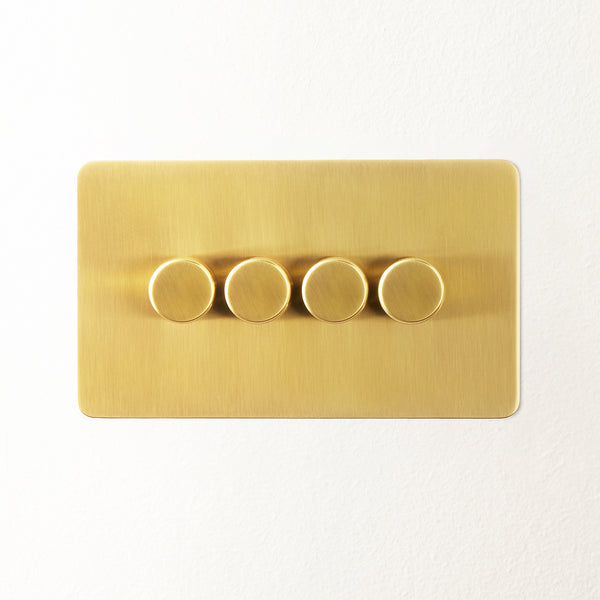 What separates these sockets and switches is that first they comprise of a sturdy single piece of flat, cast brass, rounded at the edges, and second, the stunning brass finish, which is a little less shiny and twinkly than most finishes. Super robust and really lovely. The mechanism has a lovely 'click' and, like the plate is built to last a lifetime, well...hopefully several.