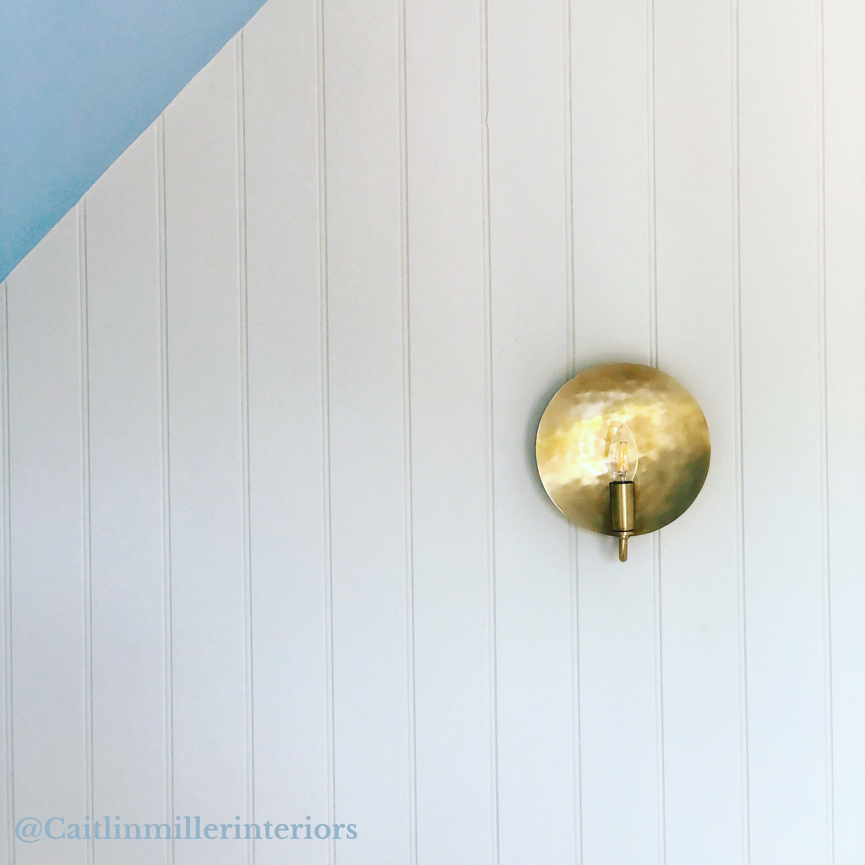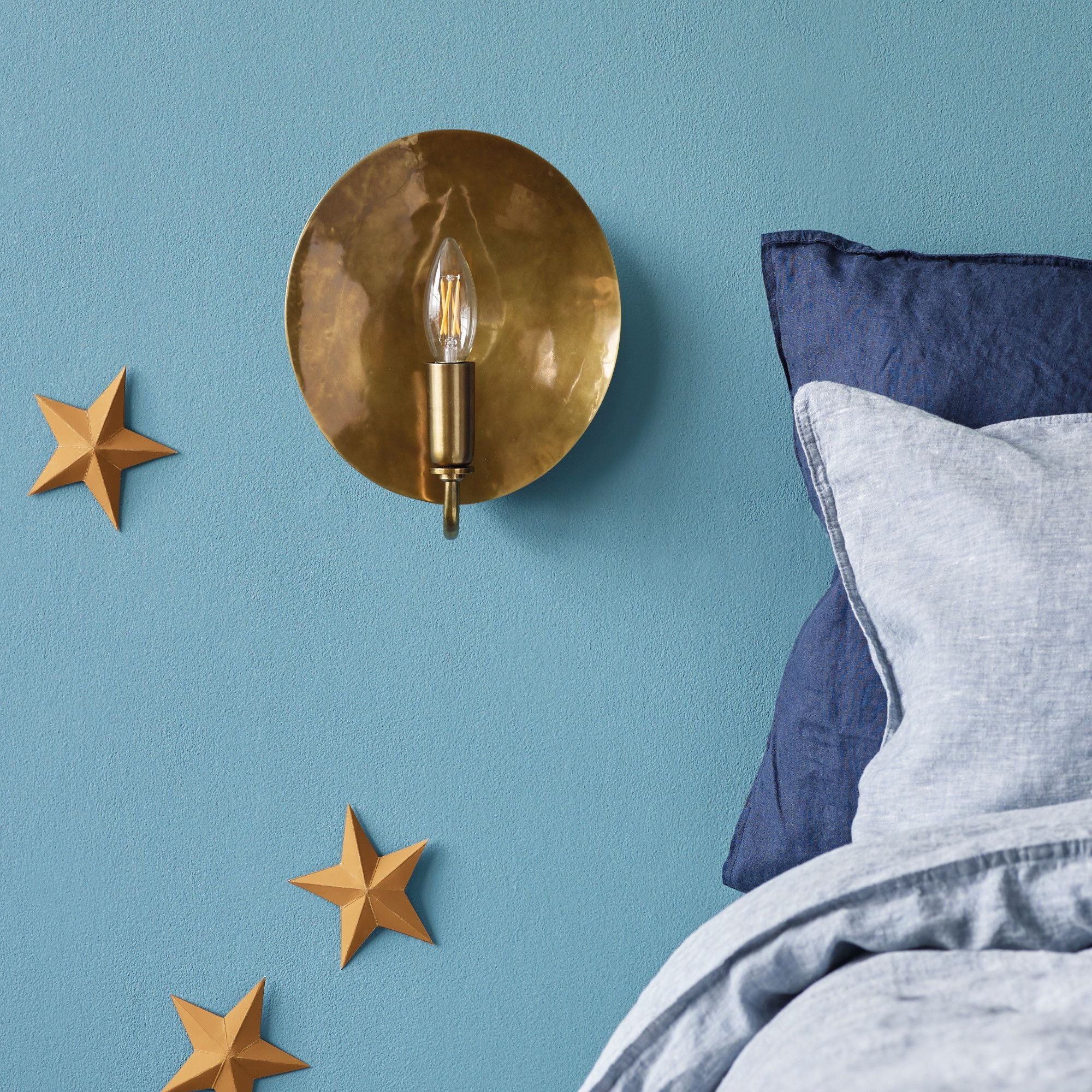 The Owl and the Pussycat would have loved this beautiful Moon sconce. A beaten concave plate of brass with a gentle antiquing produces a lovely warm golden light. Something that you might even dance to!
