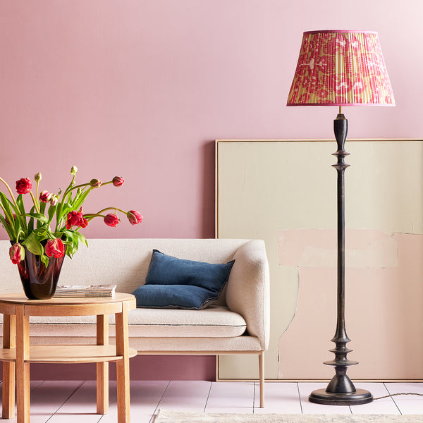 This very imposing turned wooden floor lamp is a long time favourite of ours. So much so we now offer it in three finishes.