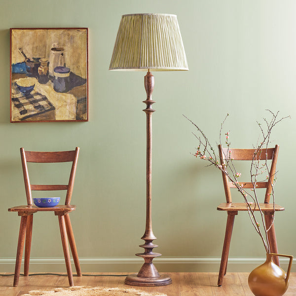 This very imposing turned wooden floor lamp is a long time favourite of ours. So much so we now offer it in three finishes.