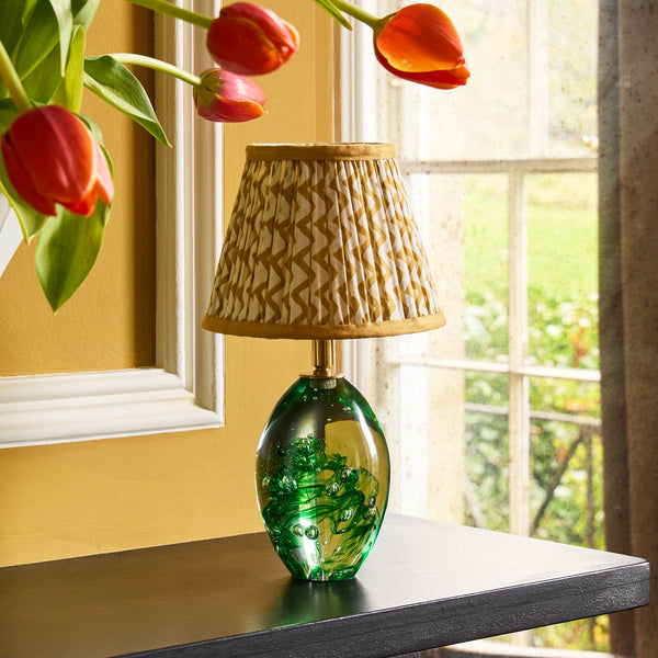 Small in stature, big on personality...Pico is a little lamp with a lot going on. Glass swirled with rich emerald greens, dotted with tiny bubbles and full of movement, like a miniature underwater world frozen in time. And the best part? It’s rechargeable! No cables, no plugs, no limits. A jewel of a lamp with a wild streak.