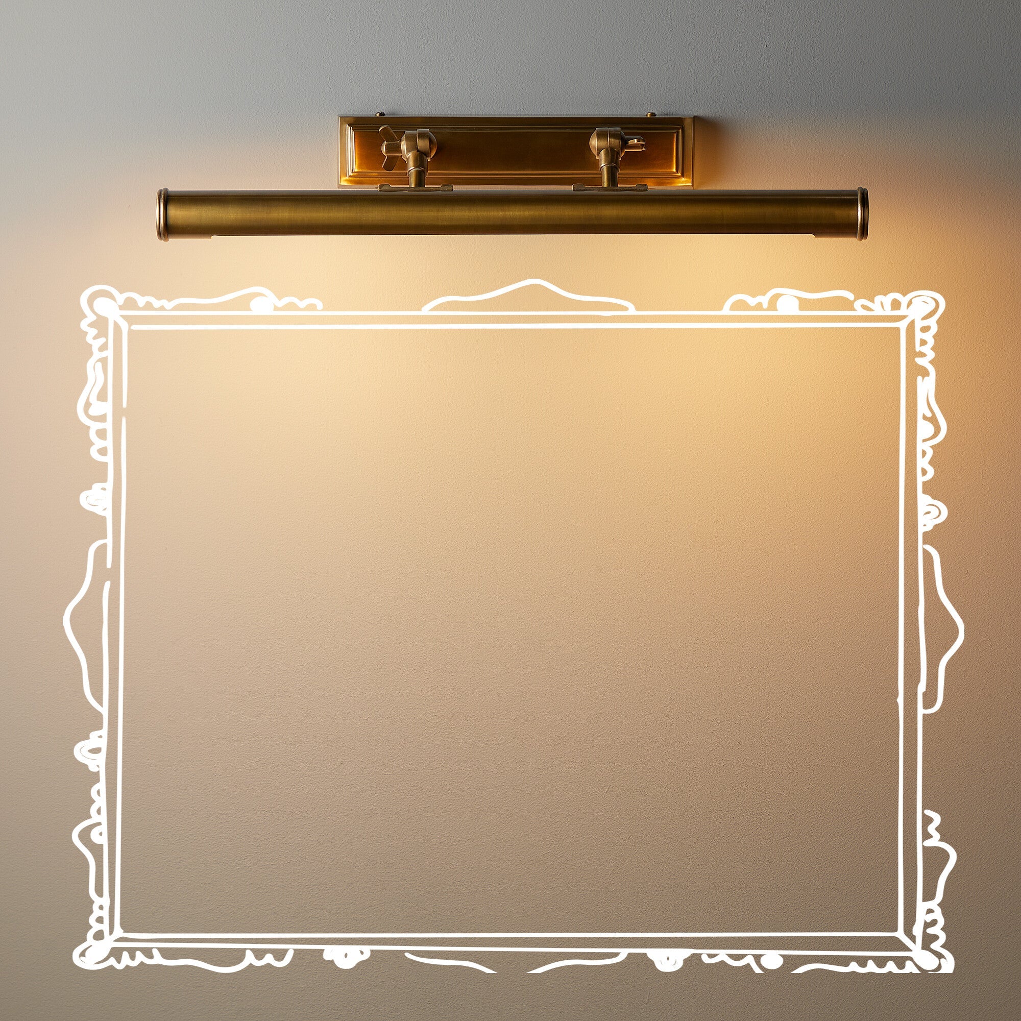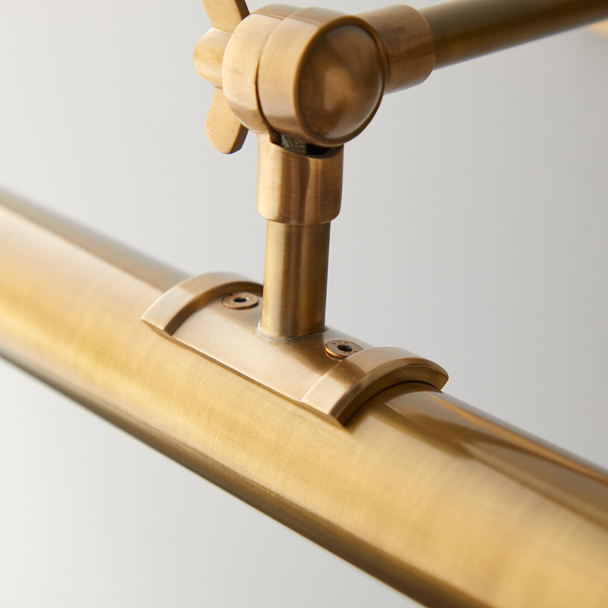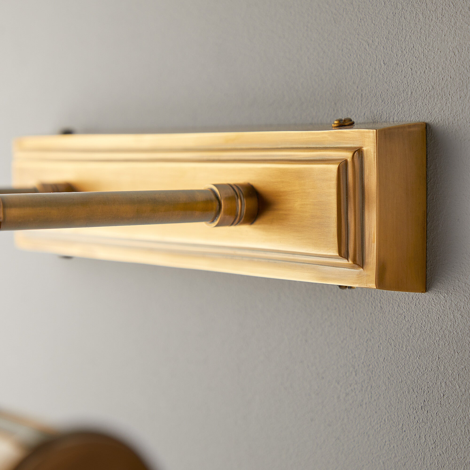Forgive the name Pitcheroo…it’s silly, puerile and doesn’t do justice to the majesty and class of these stunning picture lights. We are thrilled with them – all the proportions and little details just seem to work and balance – and, in 100% solid bass, they will last forever. Seen here in wide format, with two supporting arms.