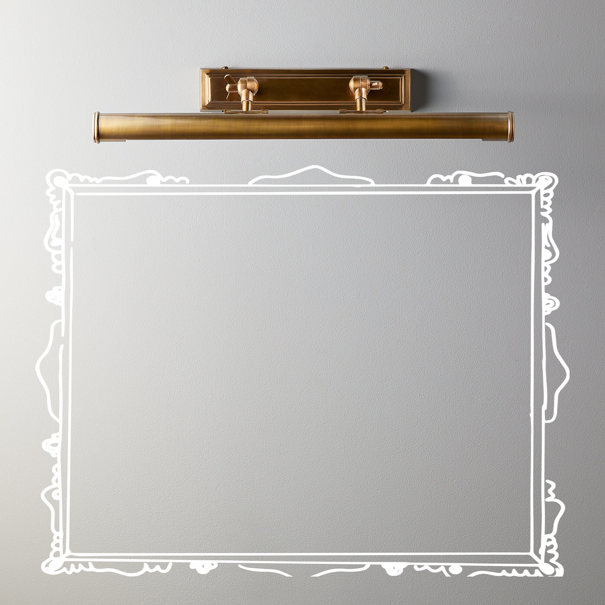 pitcheroo double arm picture light in antique brass see dimensions