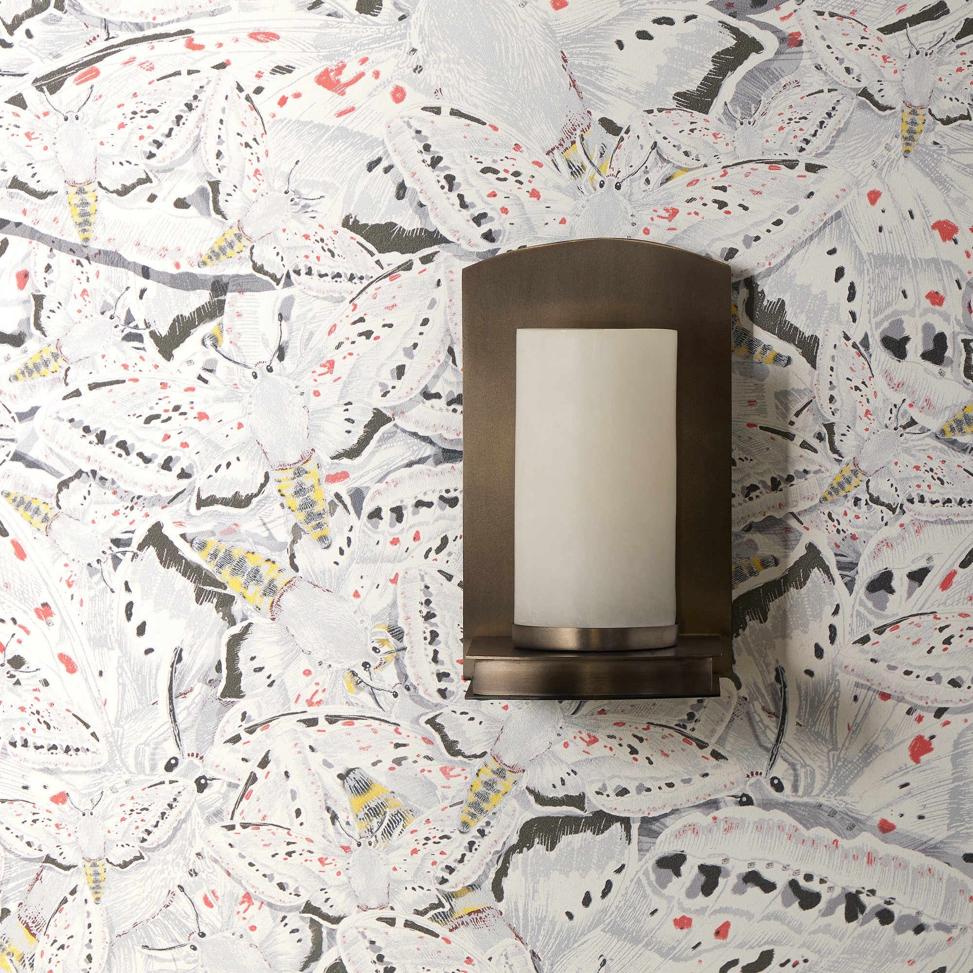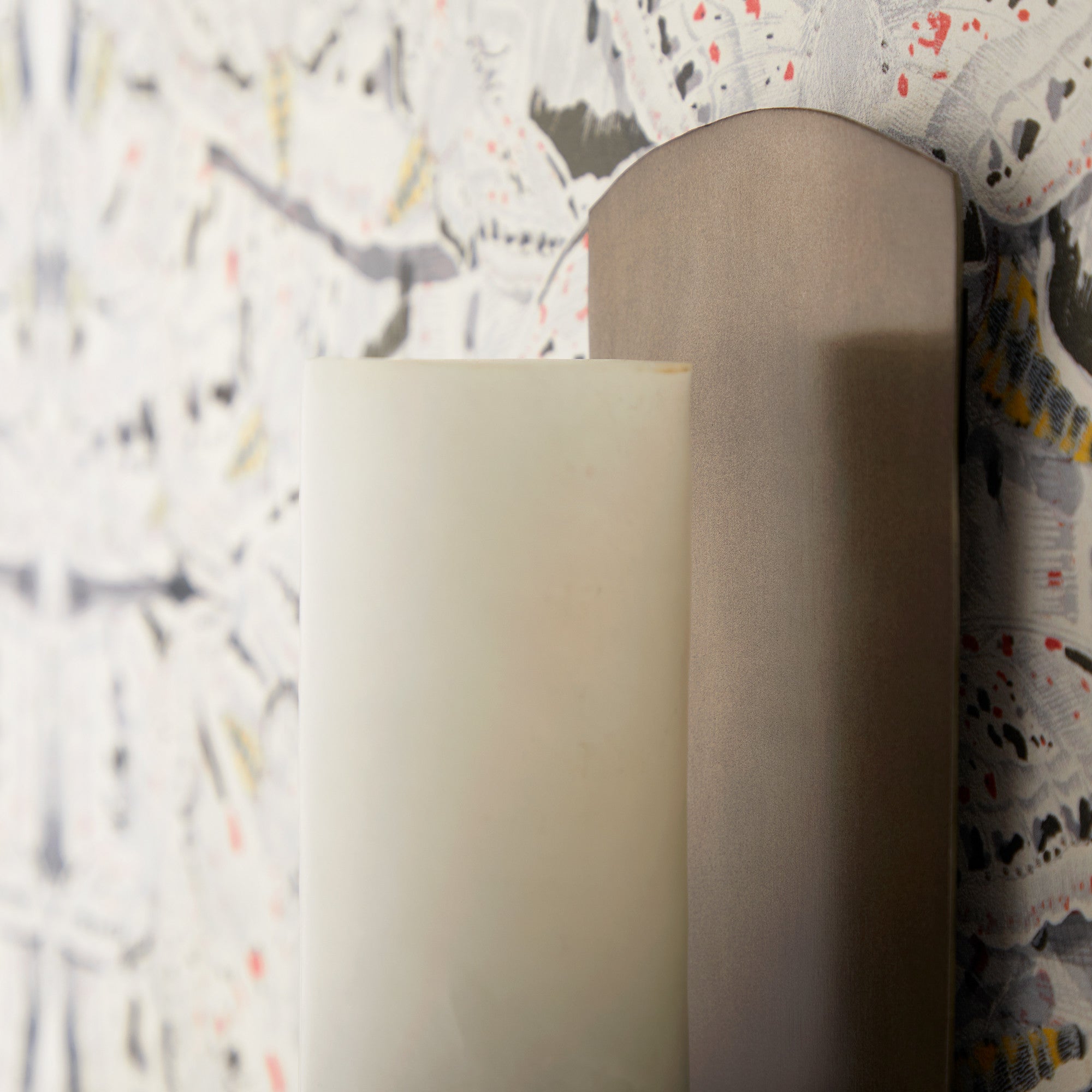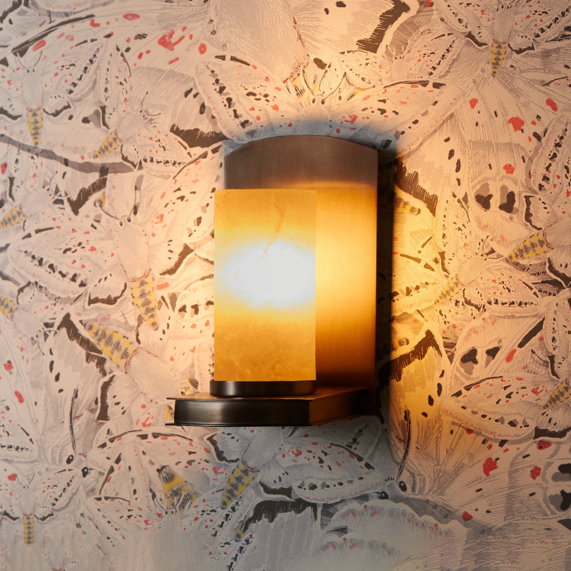 roly wall light in antique bronze with an alabaster tube see dimensions
