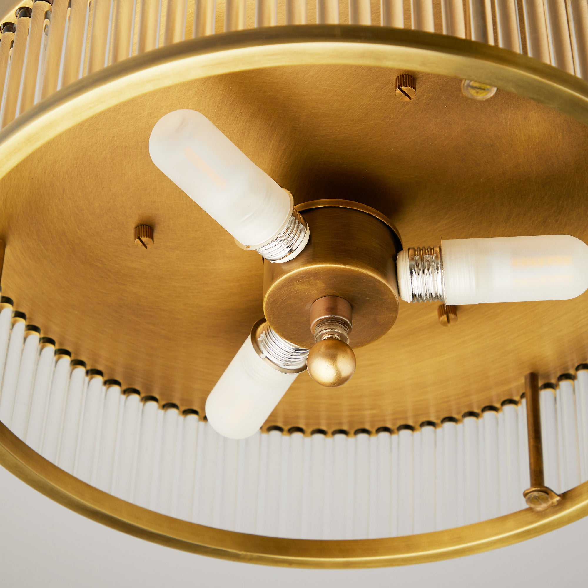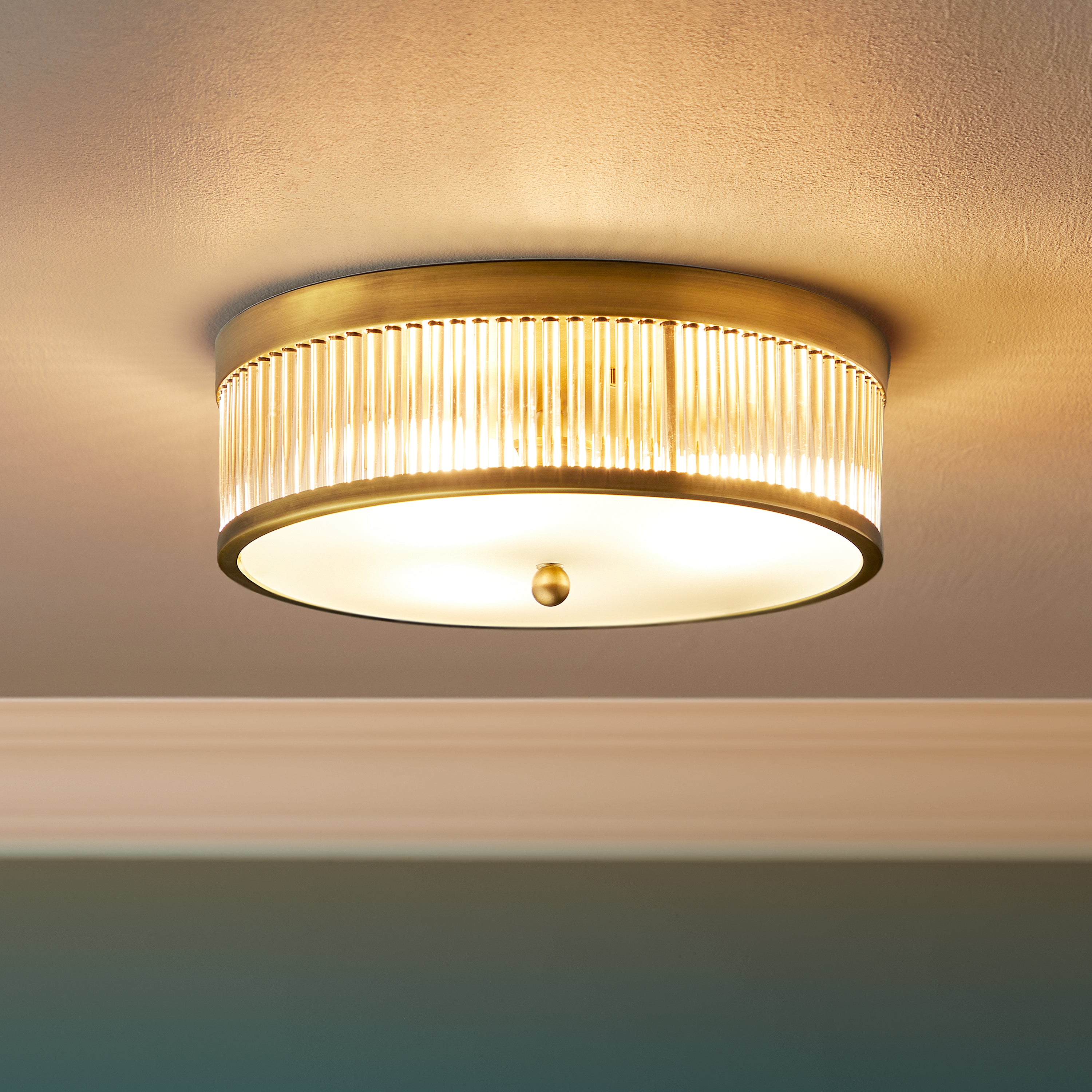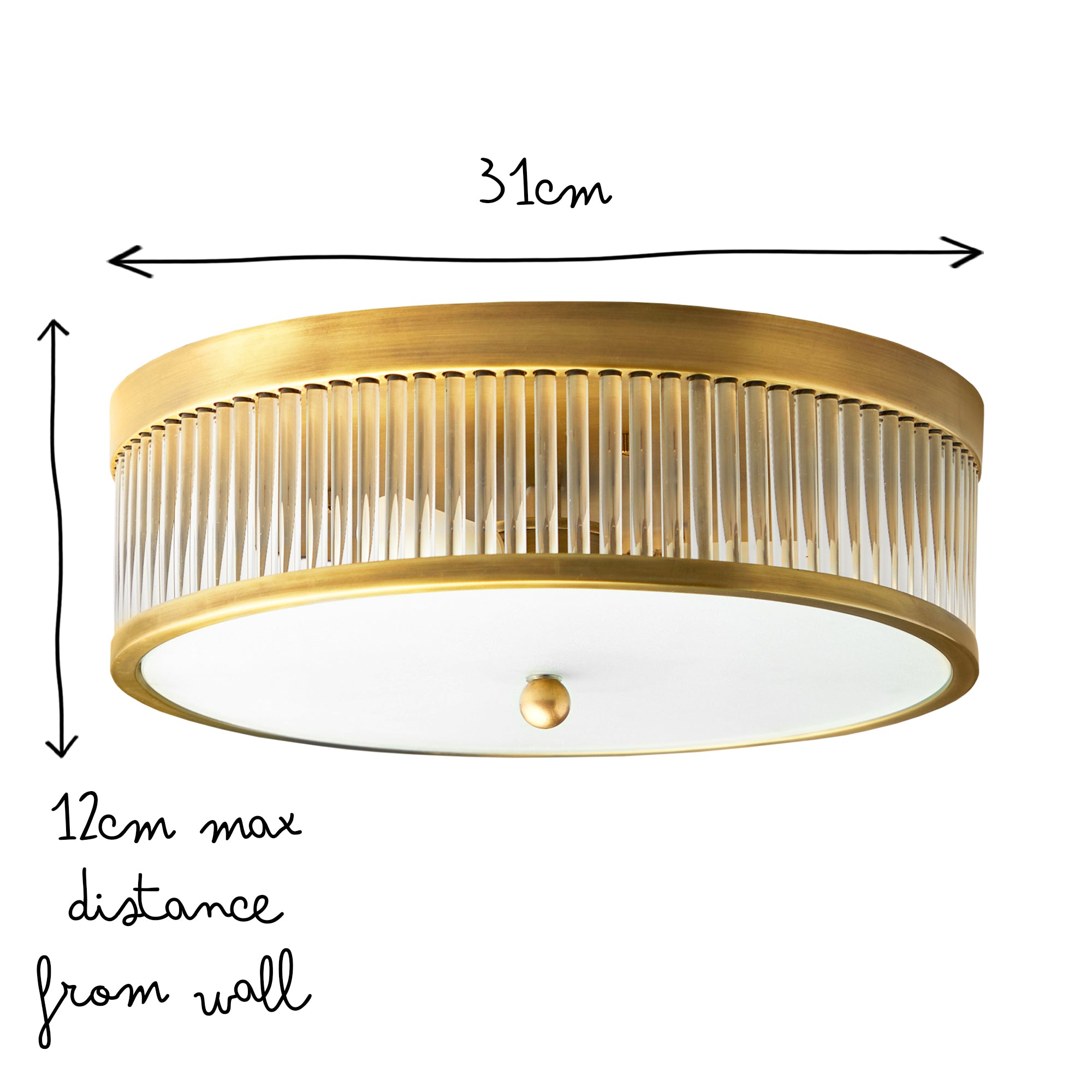 The last word in art deco ceiling light chic - our Round Roddy is, as the name suggests, round, and twinkles as the light dances through the glass rods (or is gently diffused as it glows through the glass baffle). Sitting snug and flush against the ceiling this light is IP-44 rated and so more than happy to hang out in a bathroom.