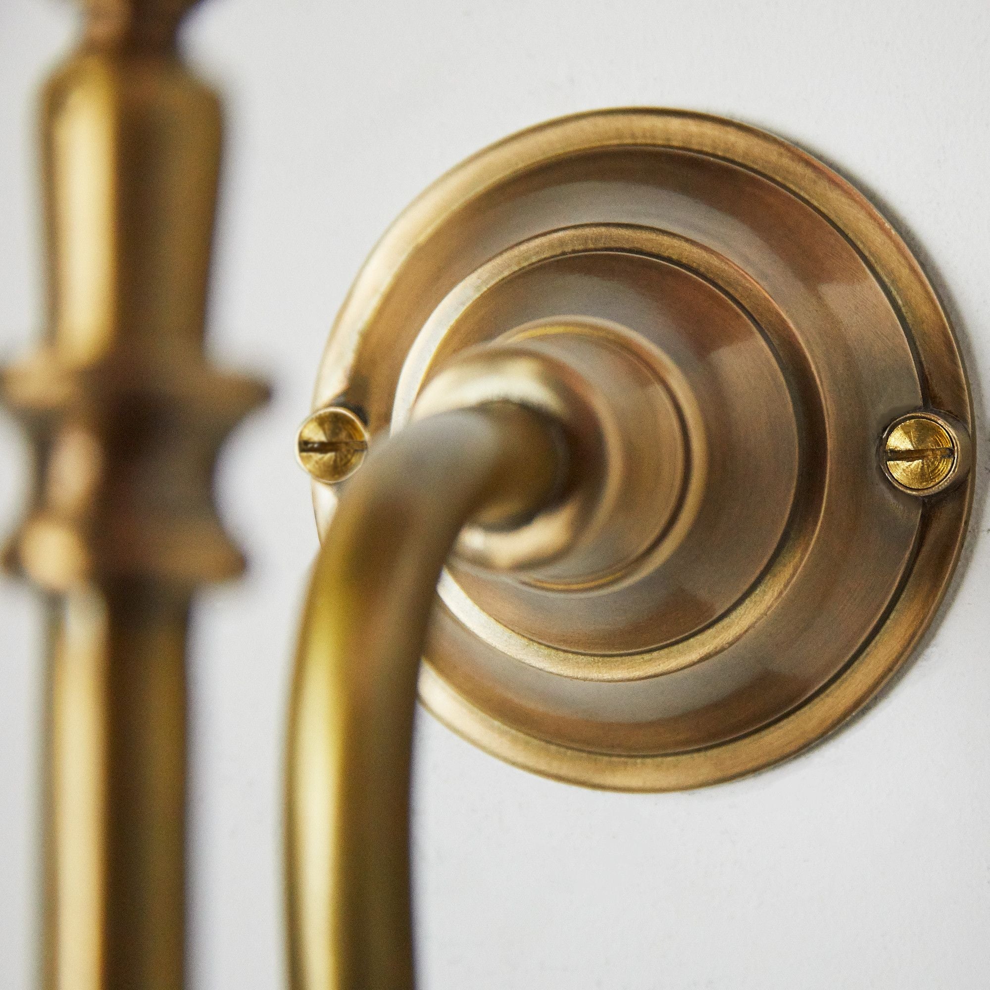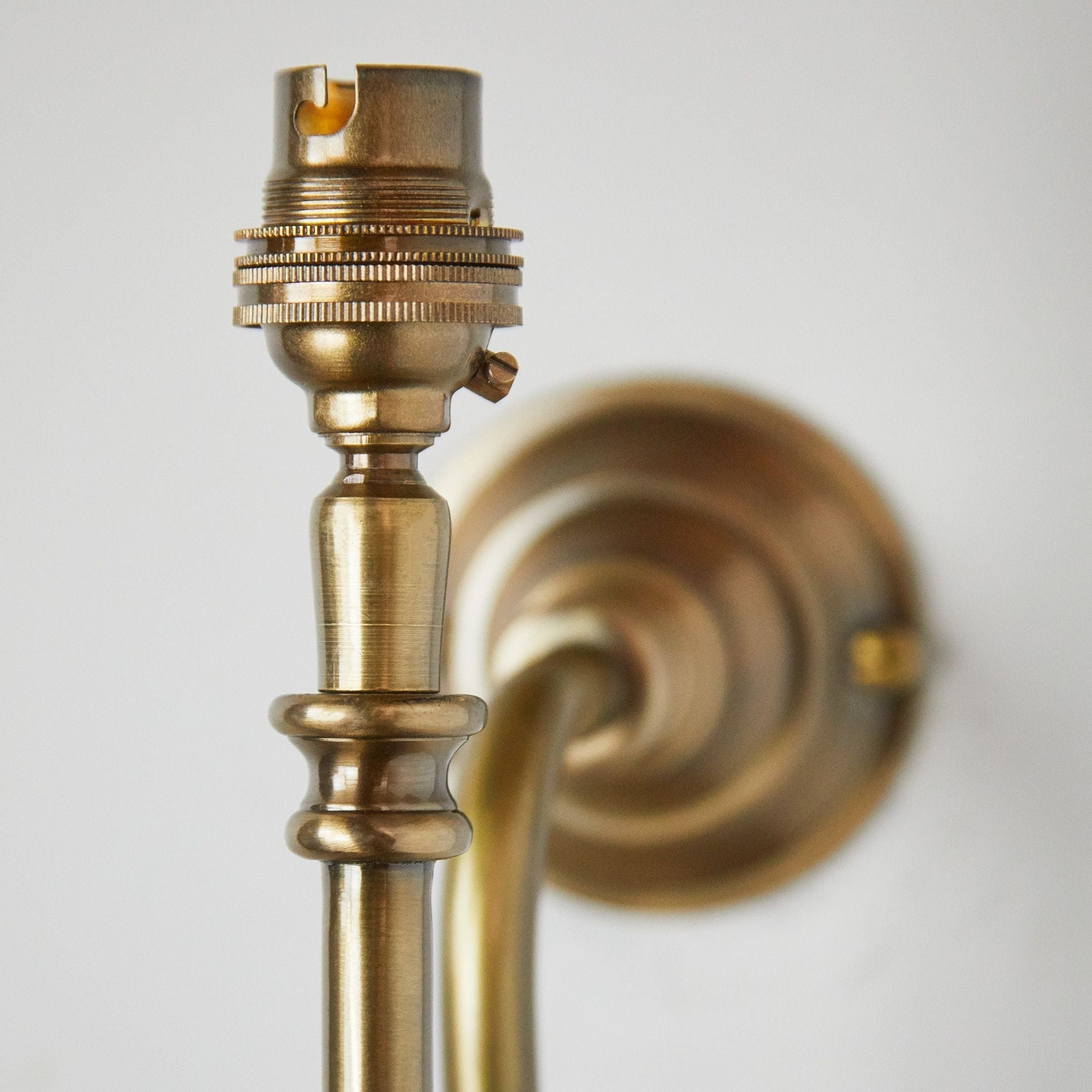 Our Shanty wall fitting is a slightly extended swan neck shape, which happily sits pointing either up or down. The fitting sits snugly to the wall, so is not overly intrusive. Very elegant and stylish lines and curves, with a pretty stepped wall rose.