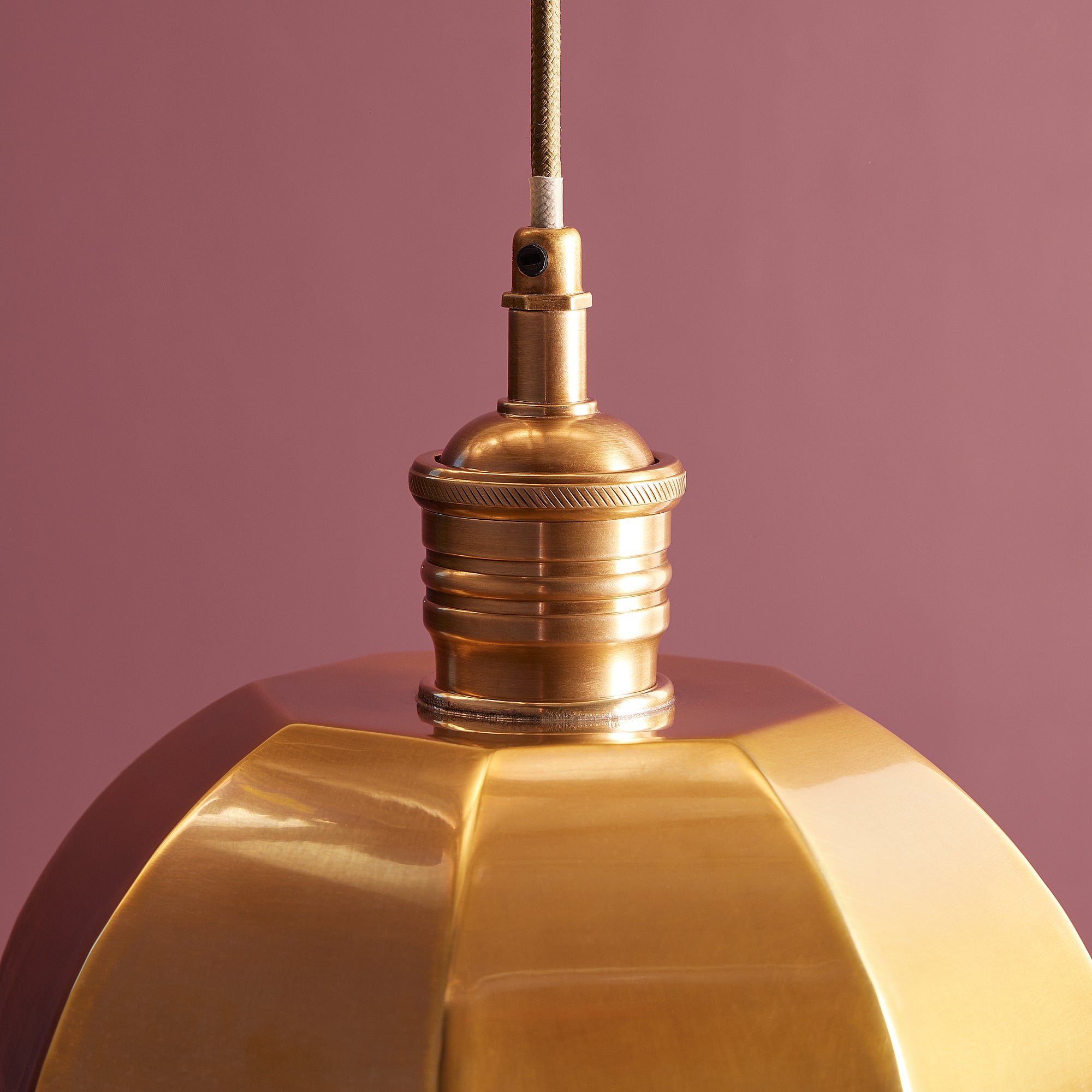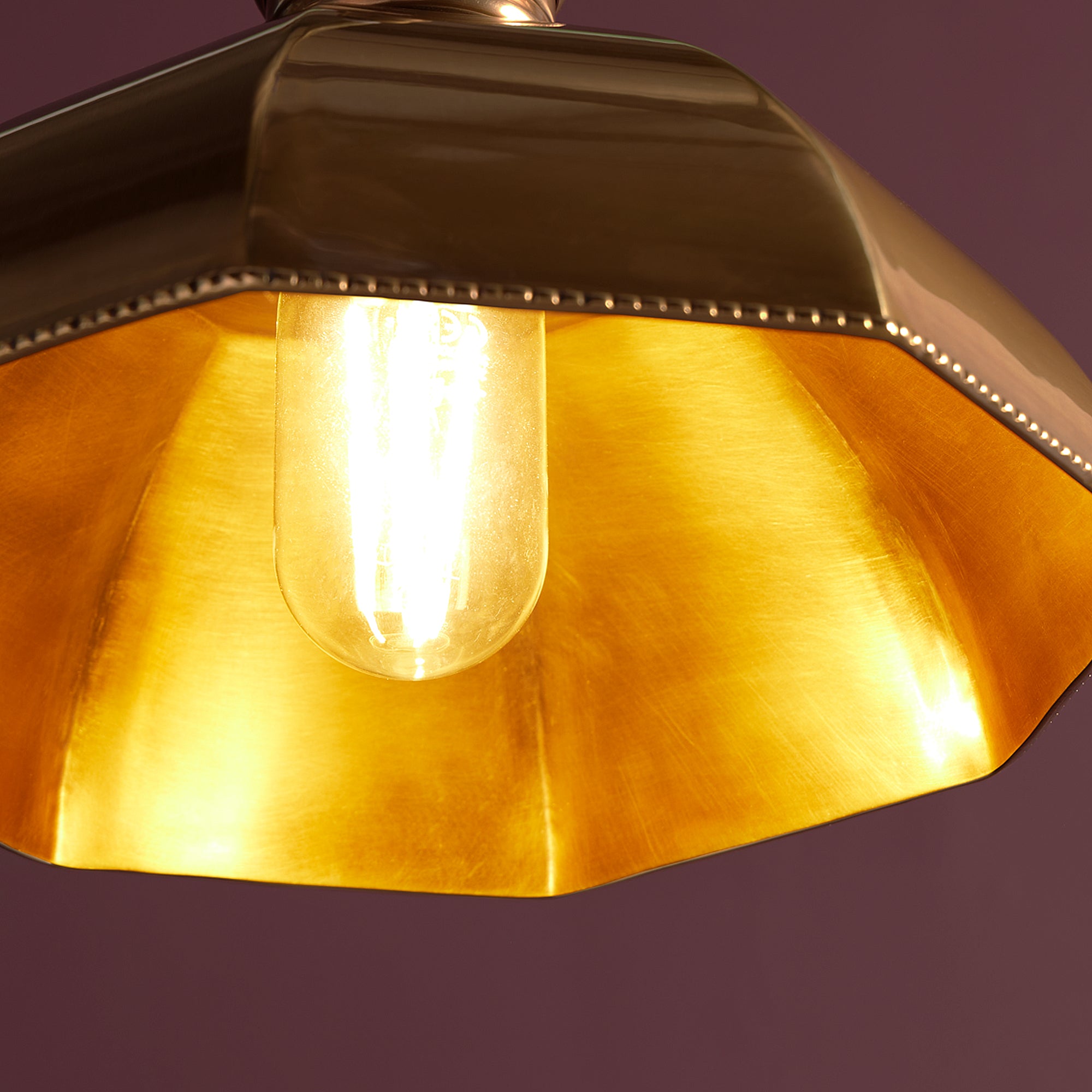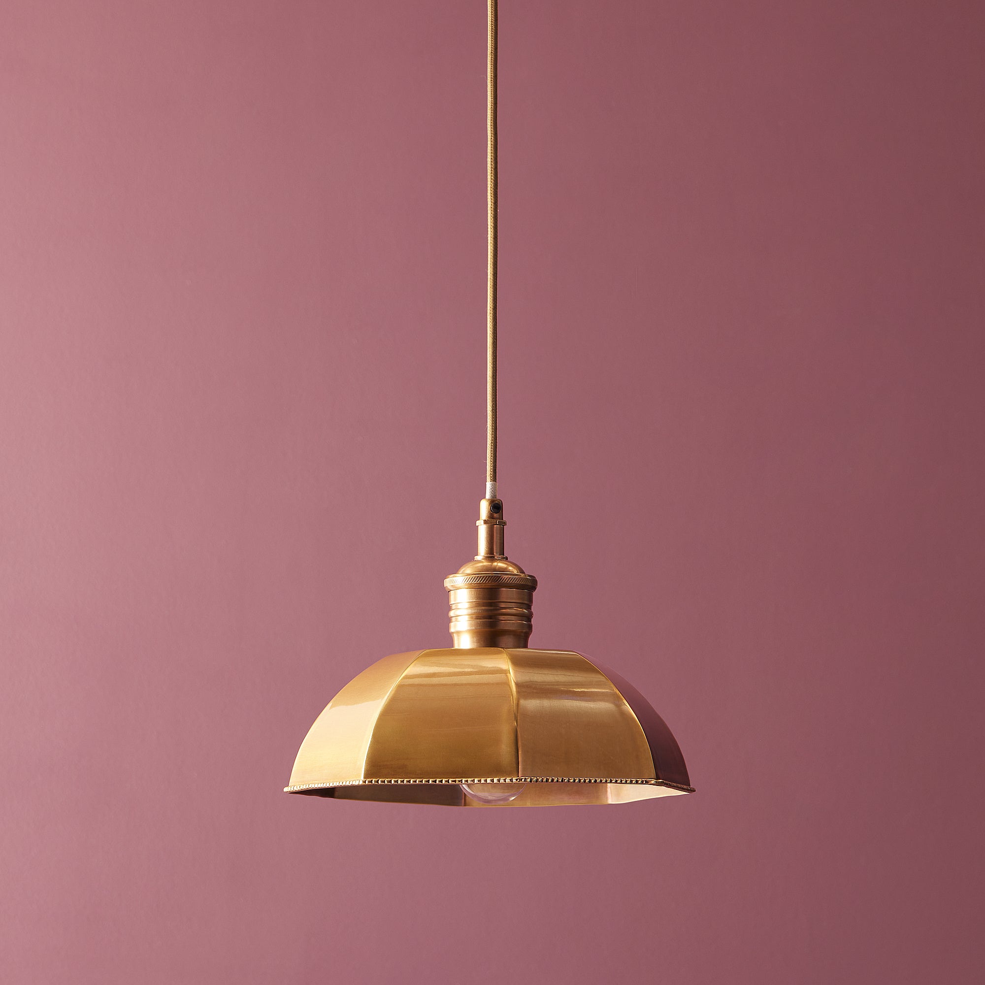 A ridiculously dainty and lovely brass pendant, with all sorts of beautiful and subtle detailing. An octagonal dome with pimped beaded edges, with a lustrous, buttery, antiqued brass finish.