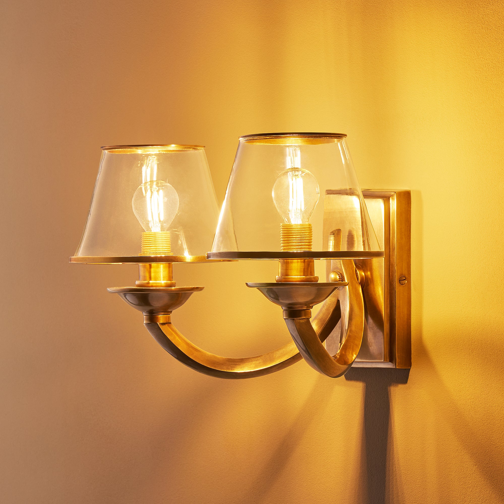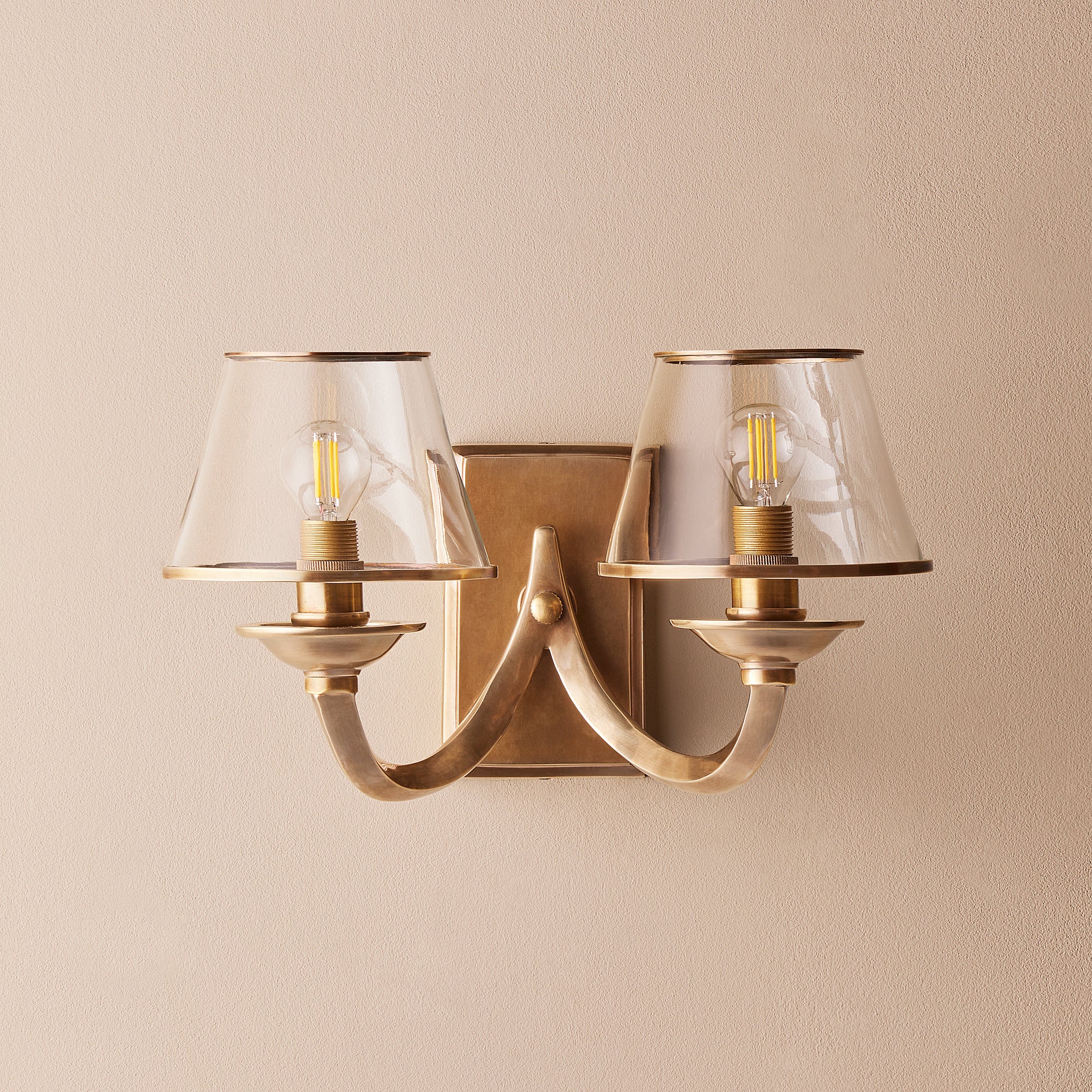 The Sovana is a very grand and imposing wall light. Unlike most of our wall lights it comes only with the stunning brass capped glass shades. Why? Because it looks amazing that way.