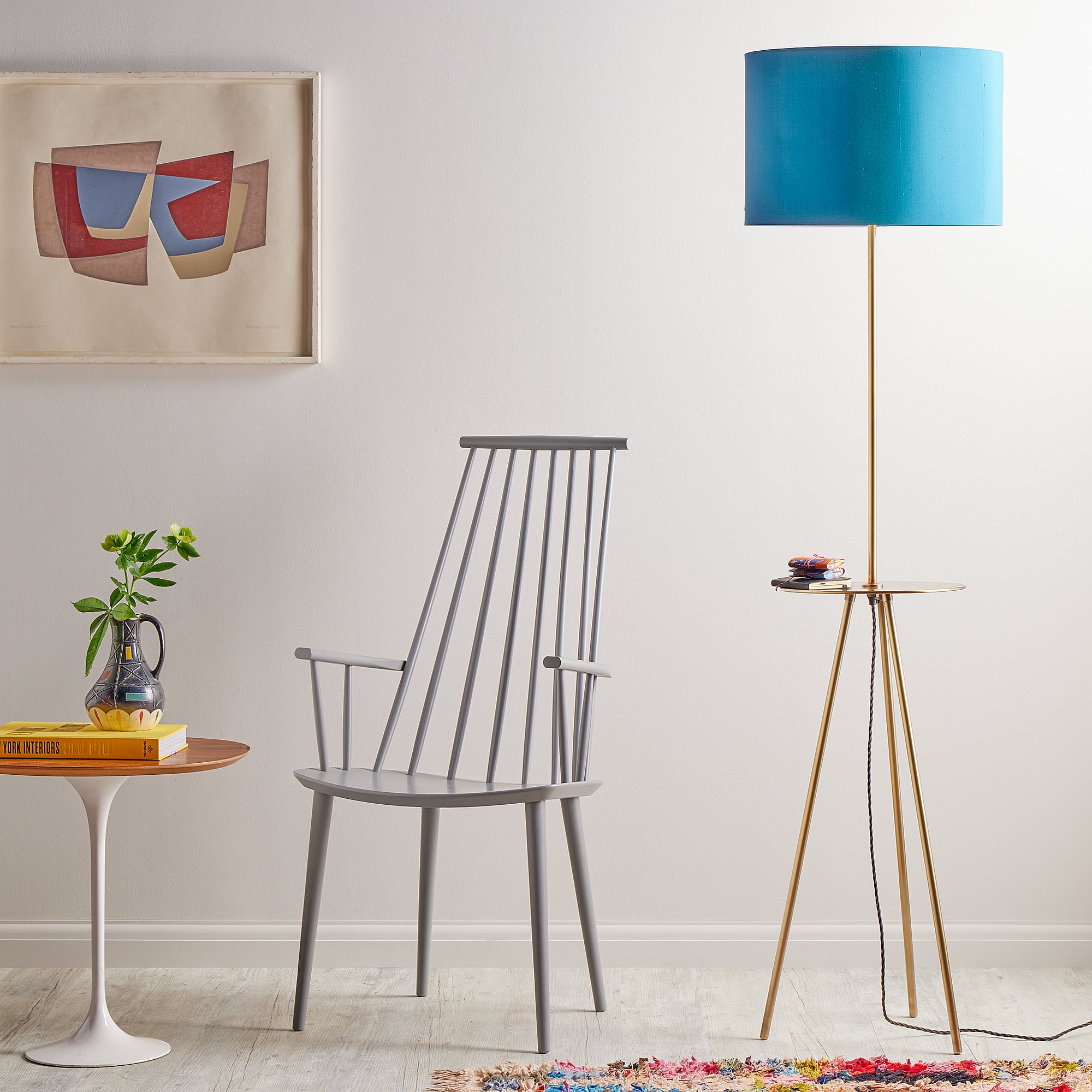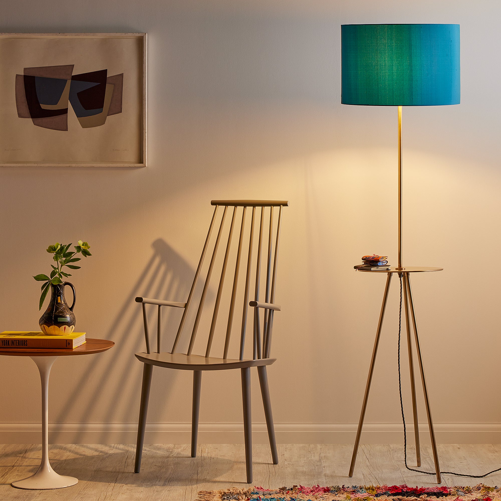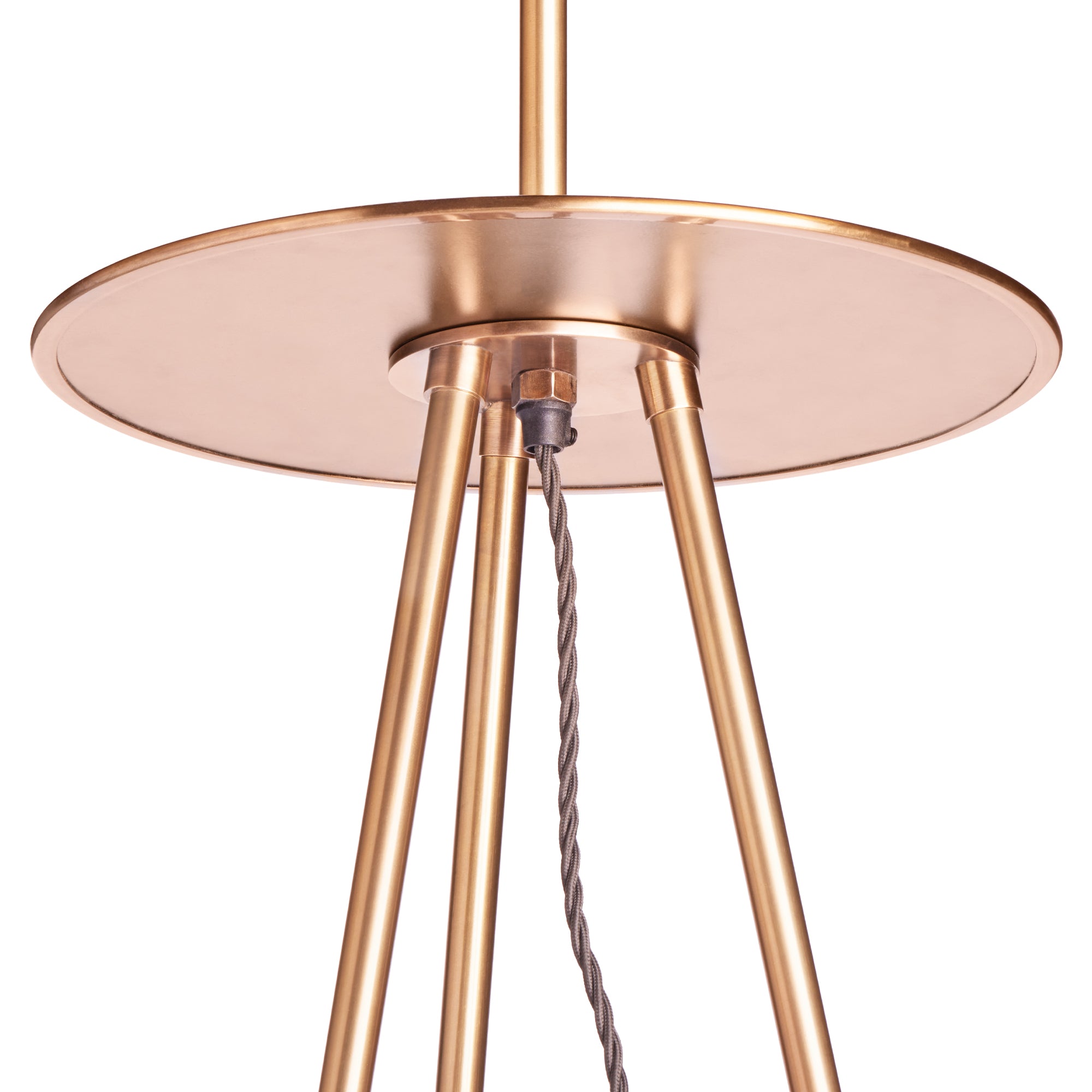 Our thoroughly contemporary fusion of a tripod and table lamp - and we love it! Too many tiny details to mention here - but the way that the beautiful brass tray is rolled at the edges is rather special, don'tcha think? Tomorrow's classic.